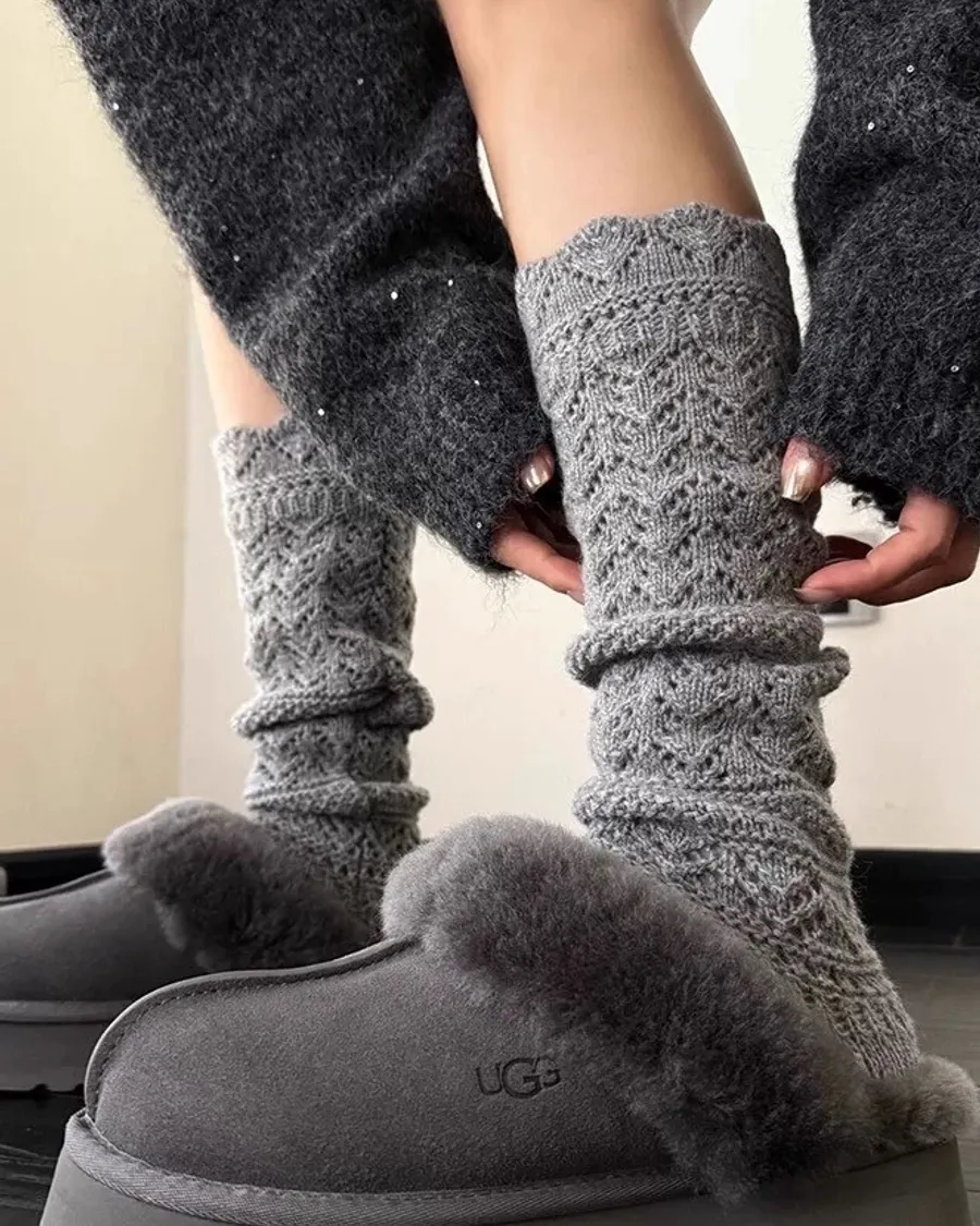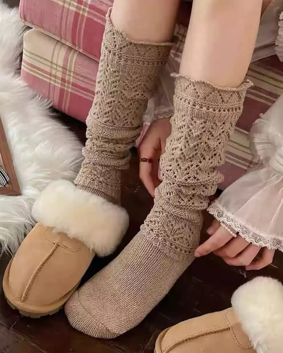 今年冬天搭靴子超火的復古勾織堆堆襪😍