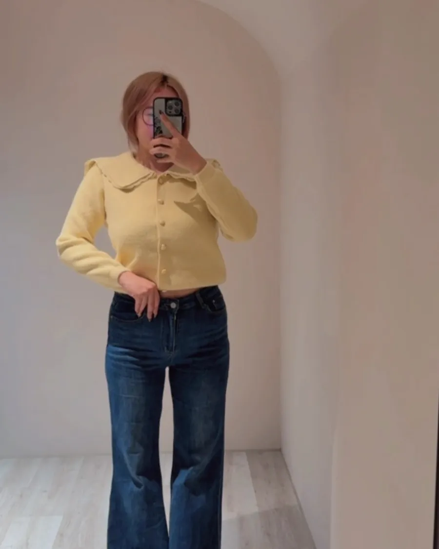 好命感提升✨荷葉領針織上衣/外套兩穿