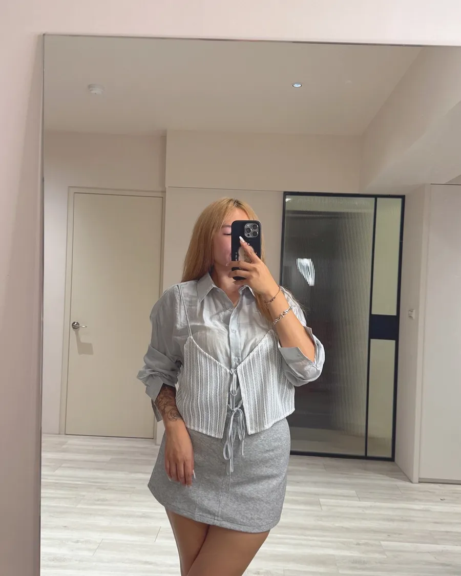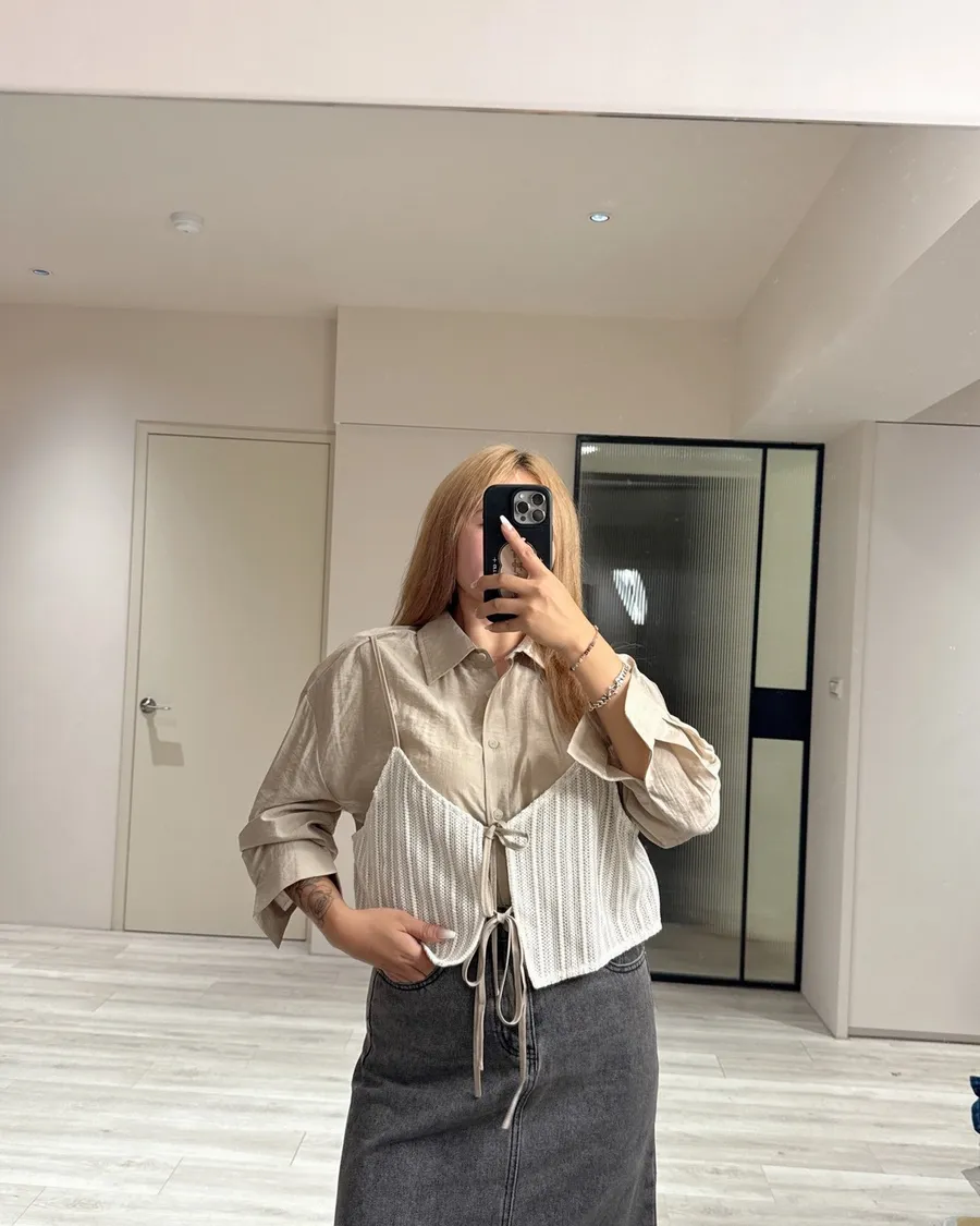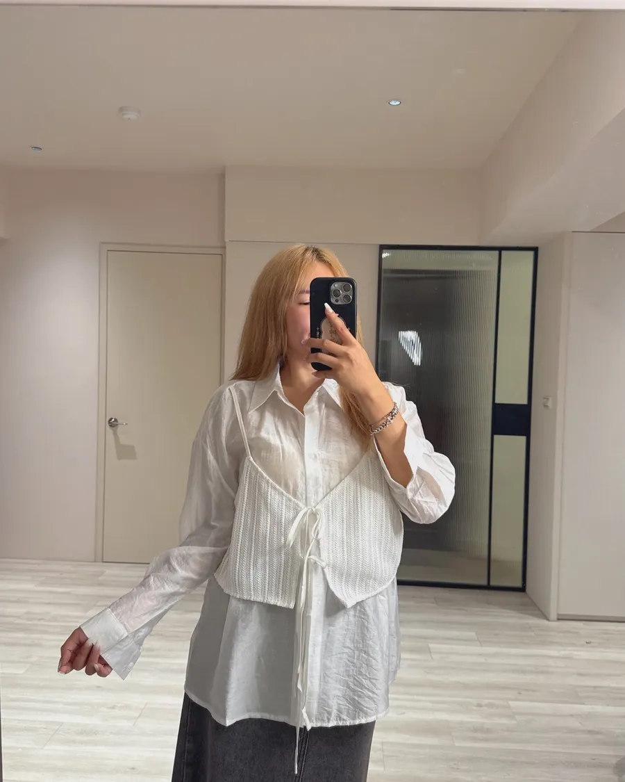 完美結合「襯衫+針織馬甲」的元素看起來像是精心搭配好的兩件套實際只要穿一件就能立刻擁有歐膩級的穿搭效果微寬鬆版型遮手臂與小腹穿起來修身不緊繃!抽繩綁帶腰部線條更明顯比例自然拉長可單穿當洋裝也能搭配短褲、牛仔褲、窄裙🙌🏽微微光澤感雪紡材質穿上去要不高級都很難