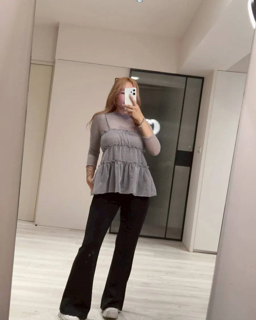 透膚長袖+外層荷葉罩衫