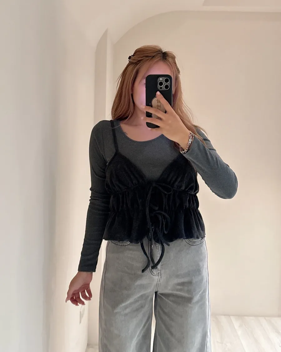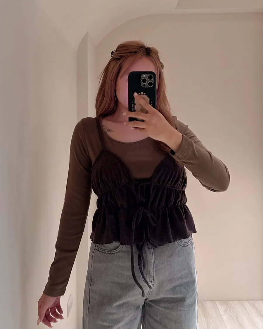 抓皺綁帶修飾腰線、外罩毛呢料+內搭微刷毛