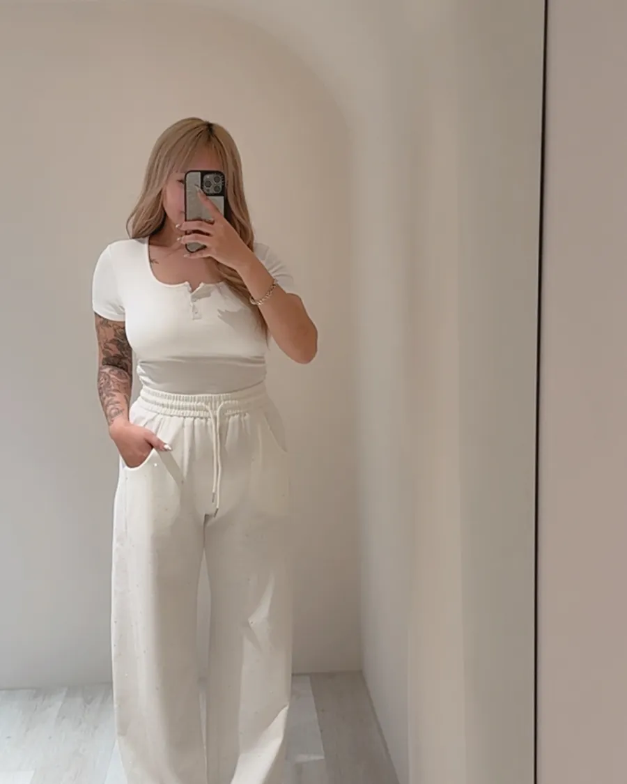 零修圖美腿術✨小彎刀滿鑽修身薄款棉褲💎