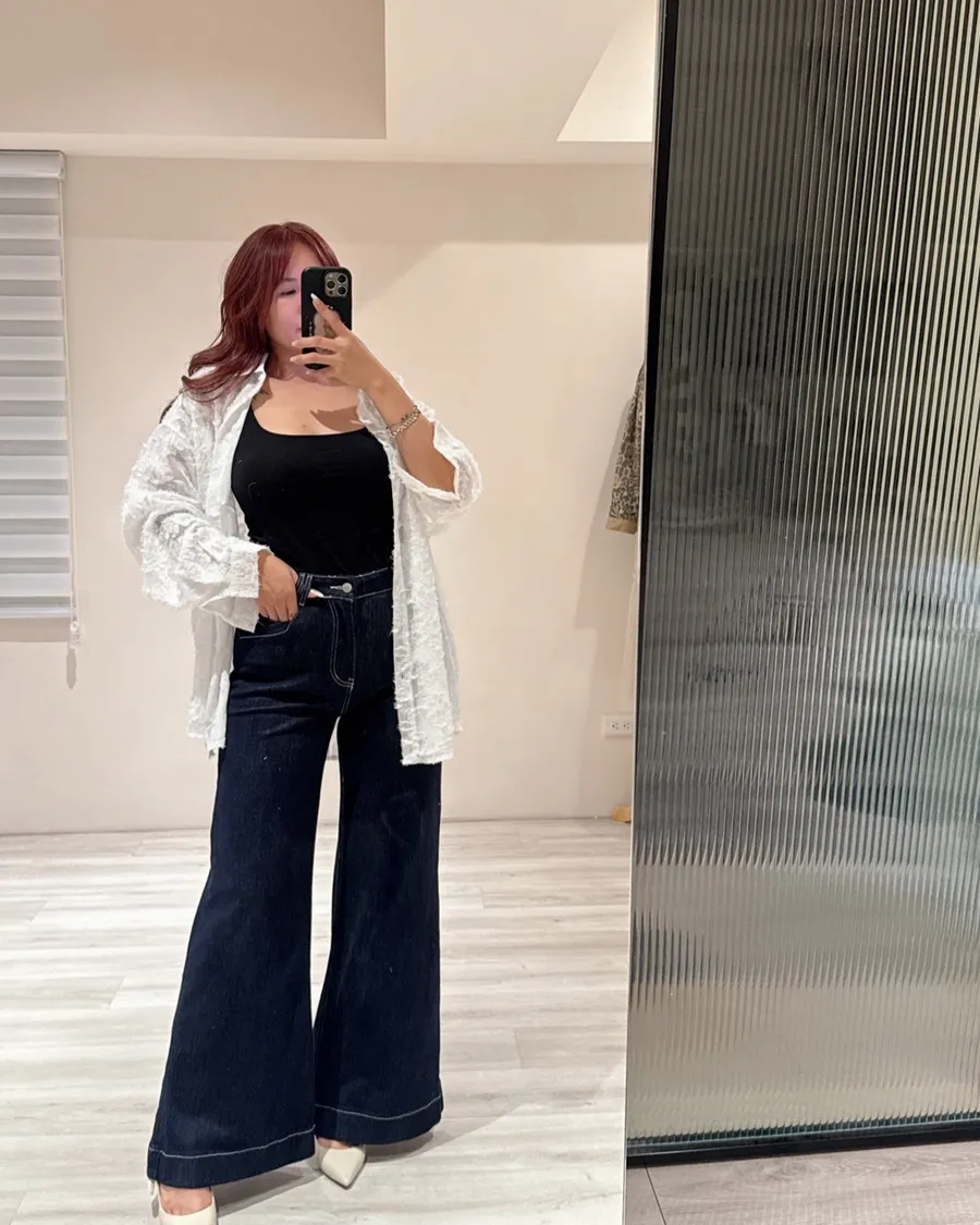 搭高腰牛仔褲打造「上柔下挺」的比例感