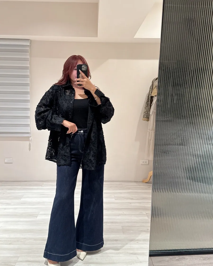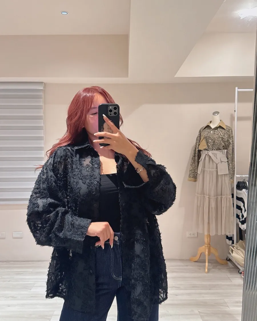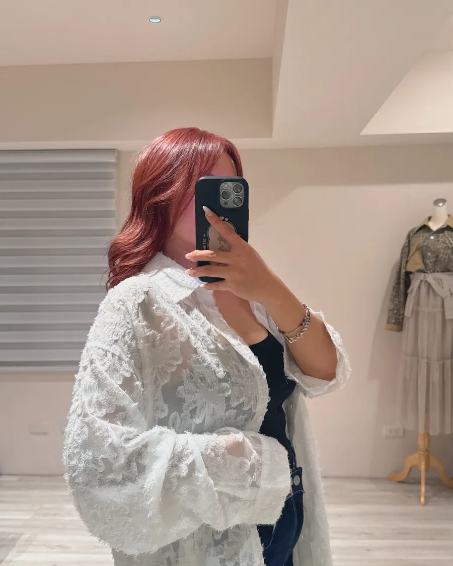 立體蕾絲刺繡雪紡罩衫