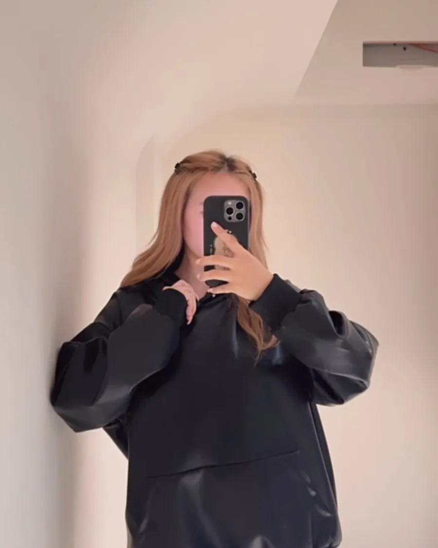 情侶款🖤質感霧面皮革連帽衛衣