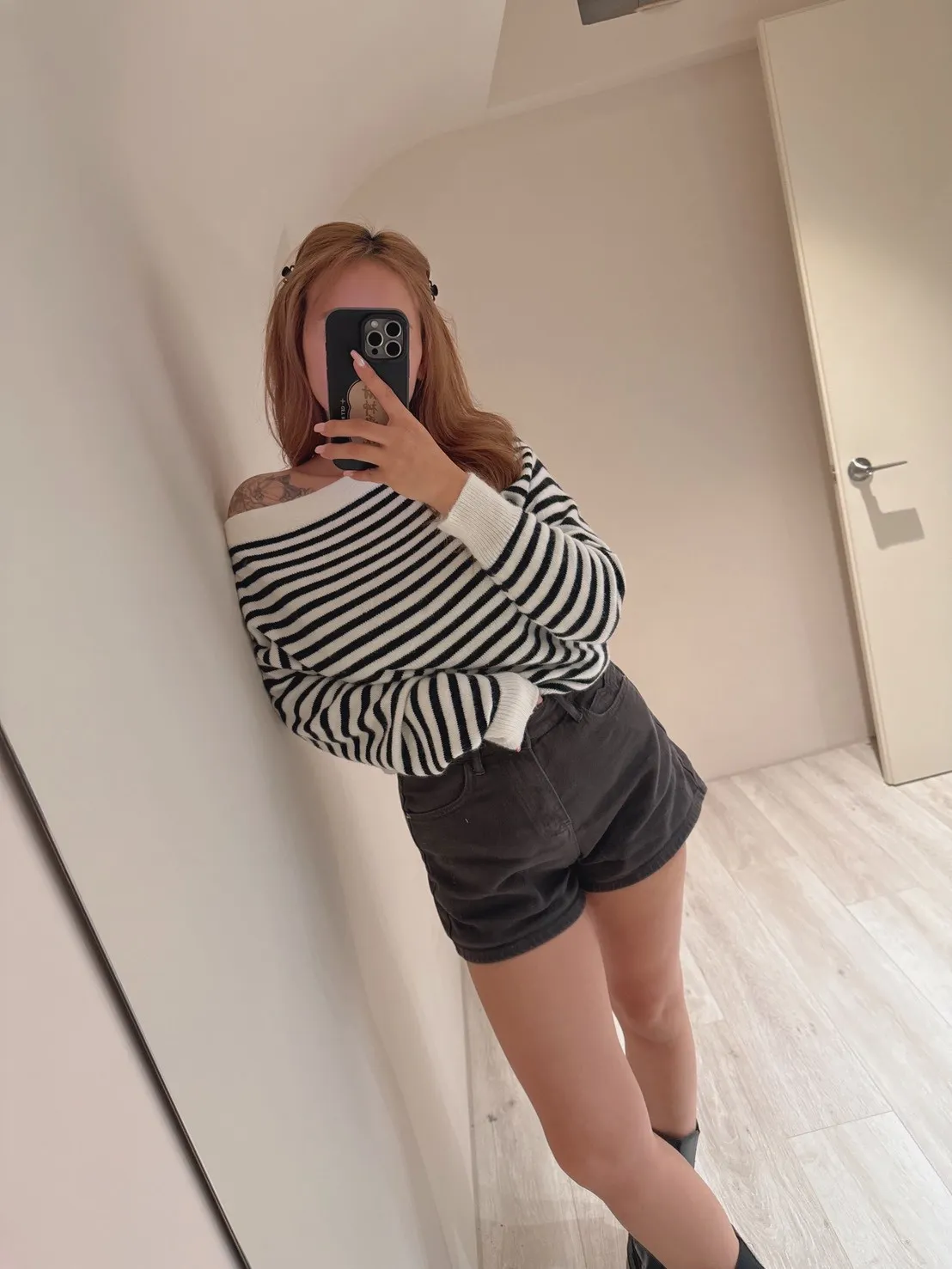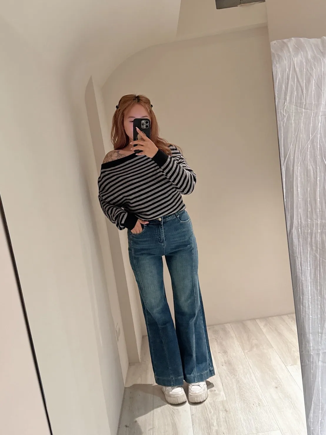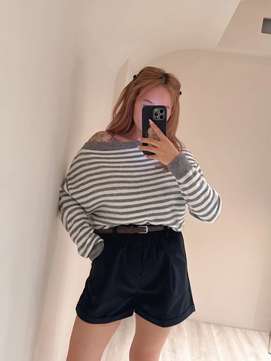 慵懶中帶點性感,細條紋讓整體更顯瘦