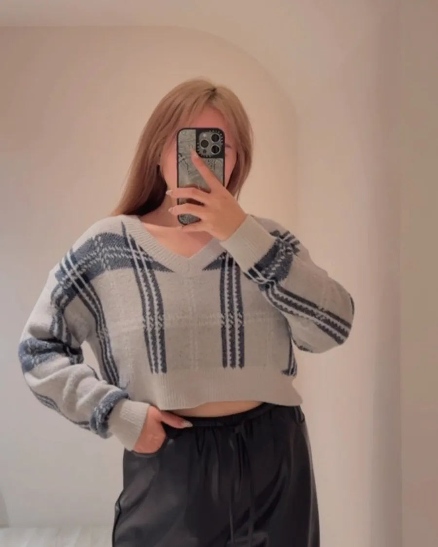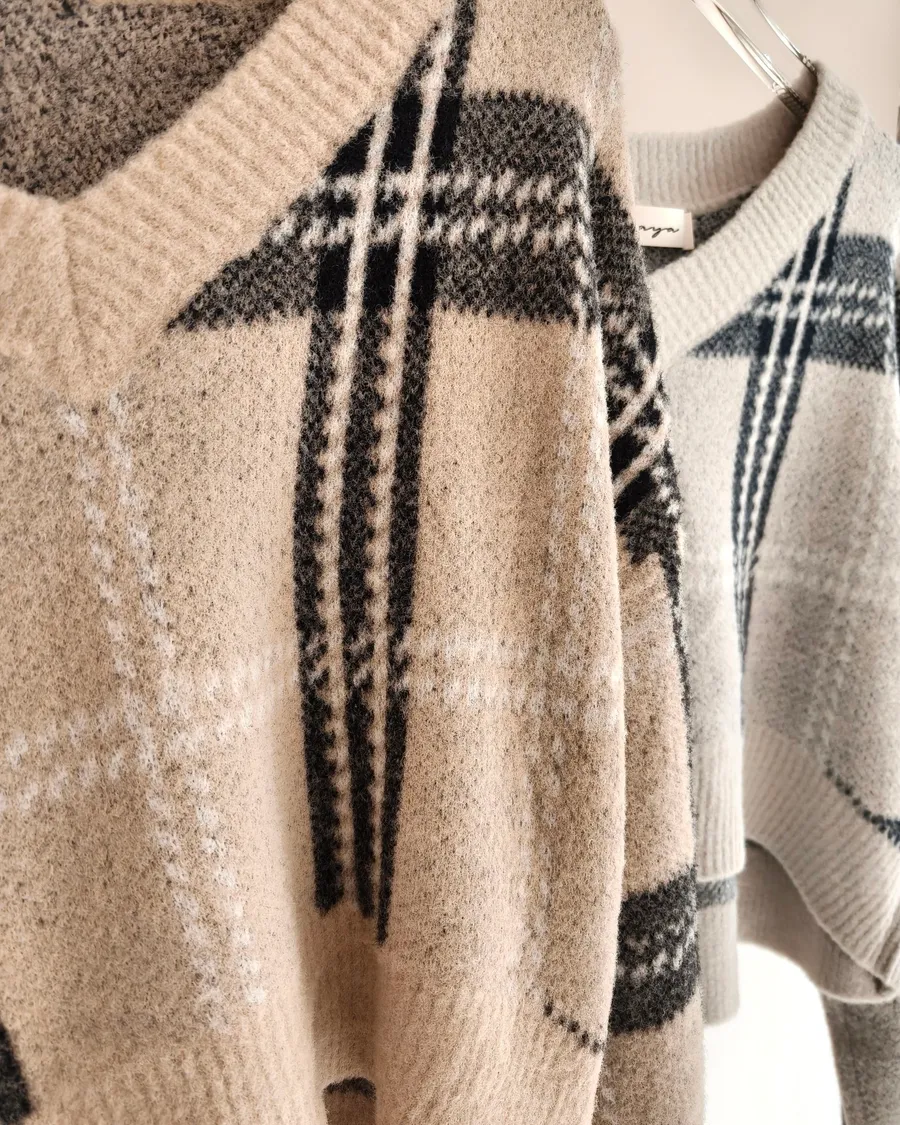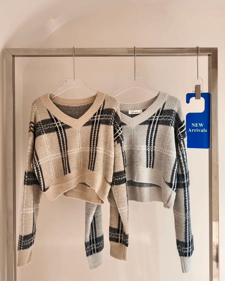 軟糯親膚格紋薄針織毛衣🧶