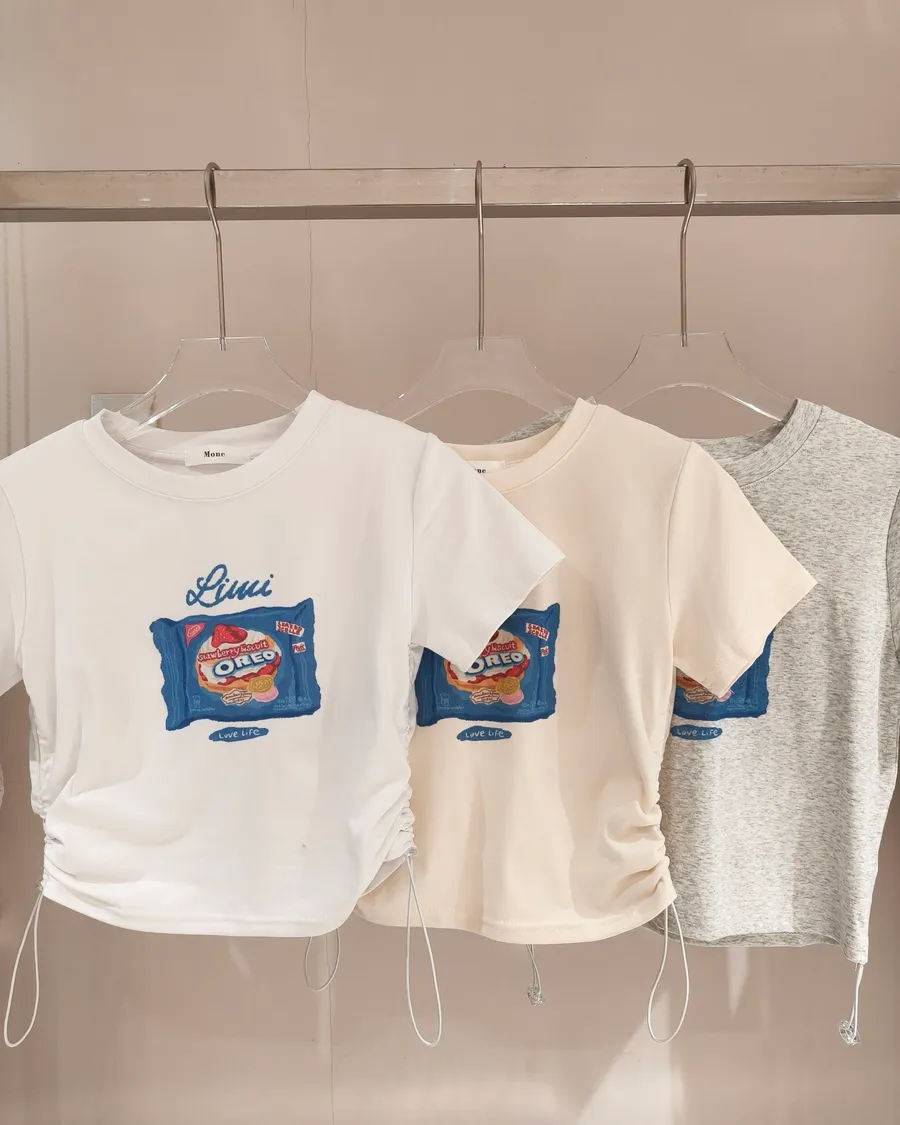 【腰身比例製造機】OREO🍫側抽繩短板彈力印花T