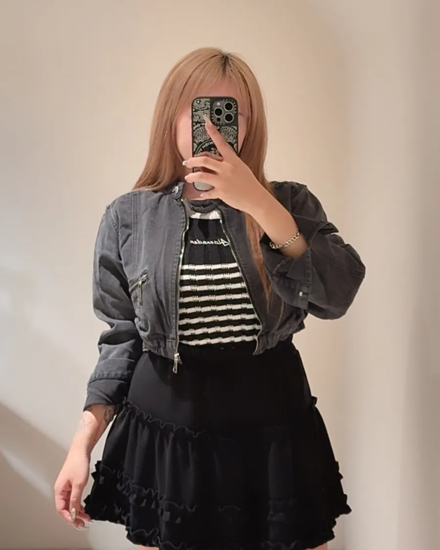 美式復古機車風短版牛仔外套🧢