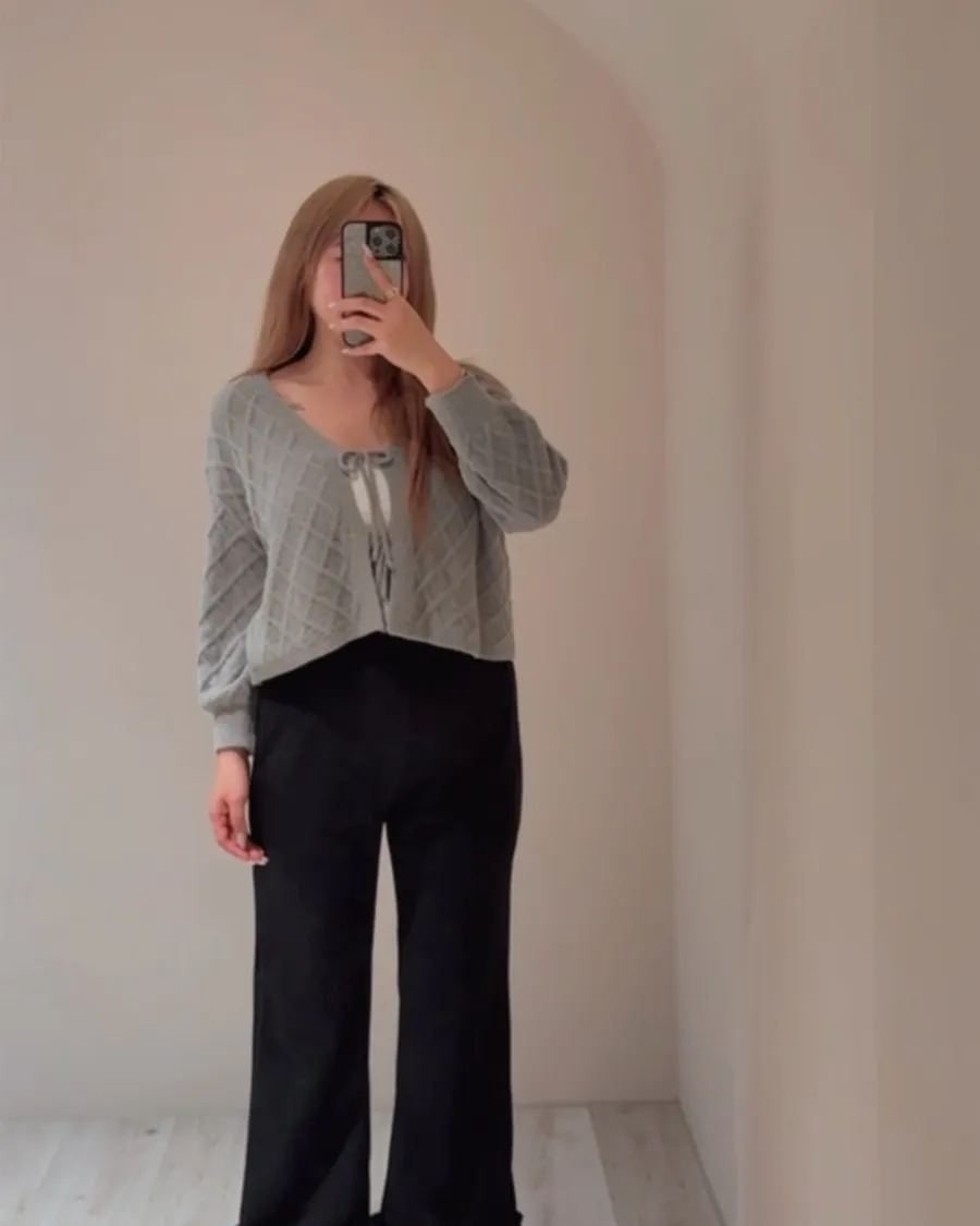 溫柔系軟糯手感 菱格綁帶罩衫外套