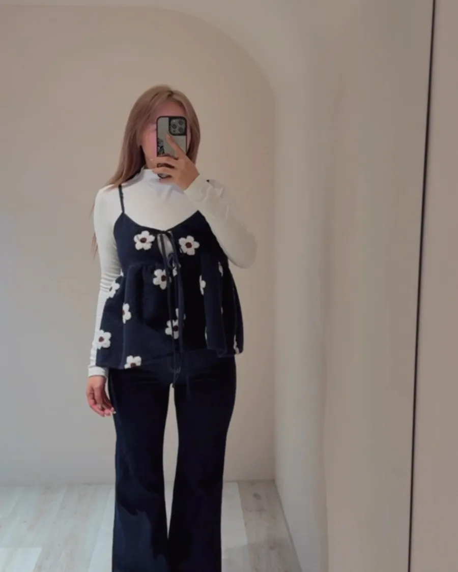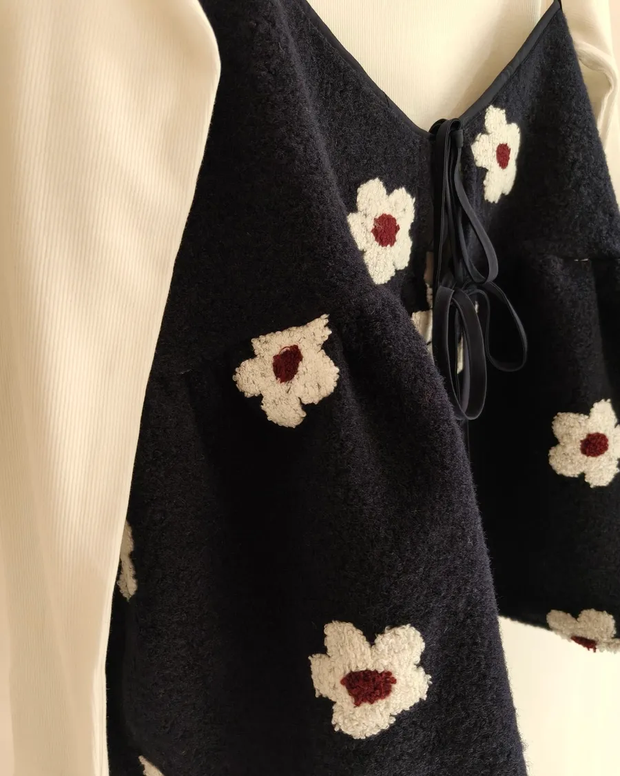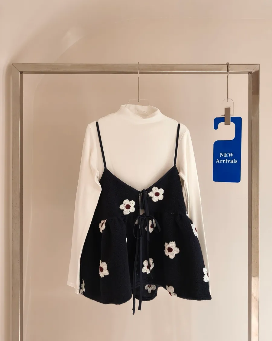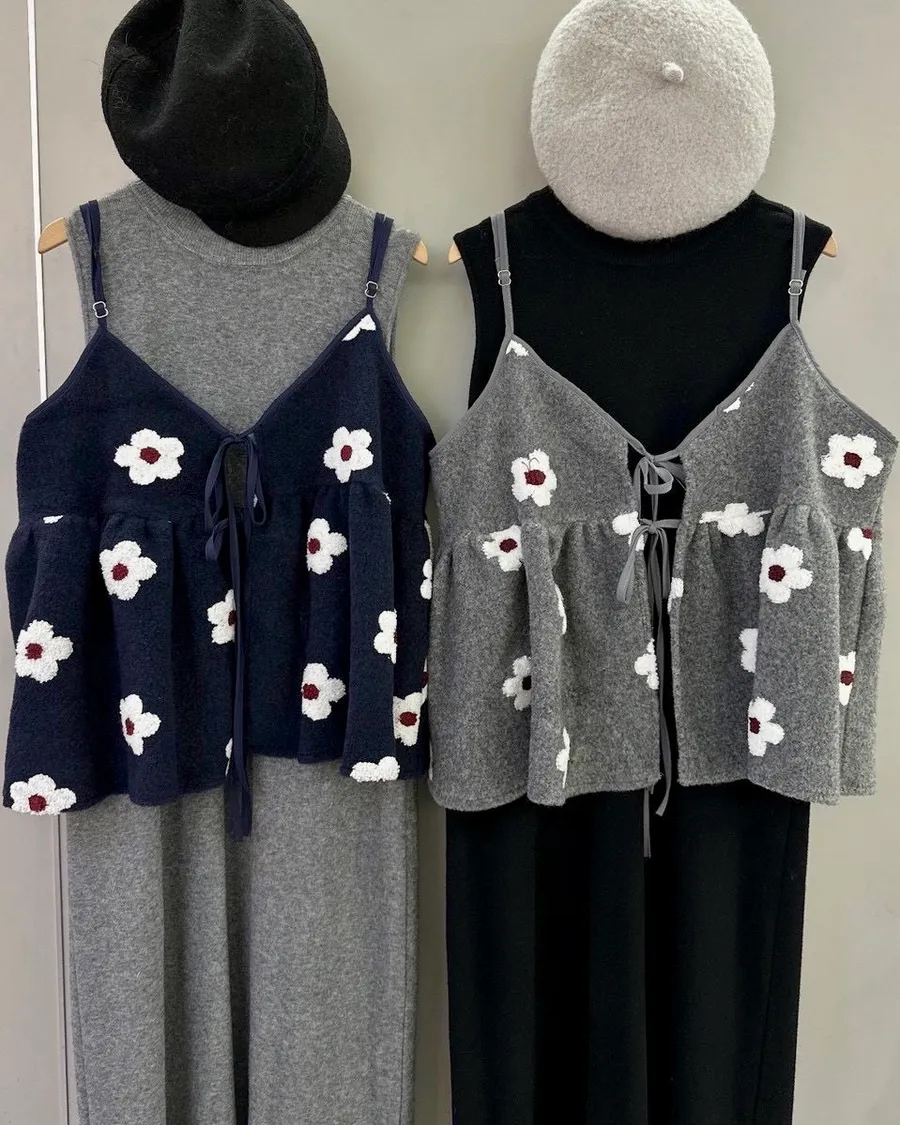羊毛氈小花吊帶罩衫(內搭另外買)