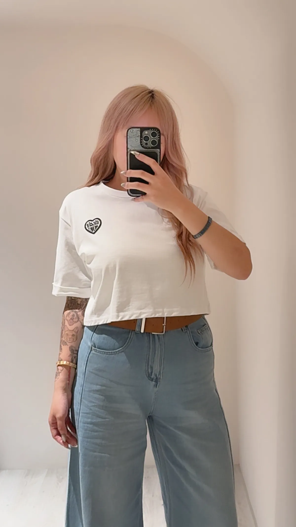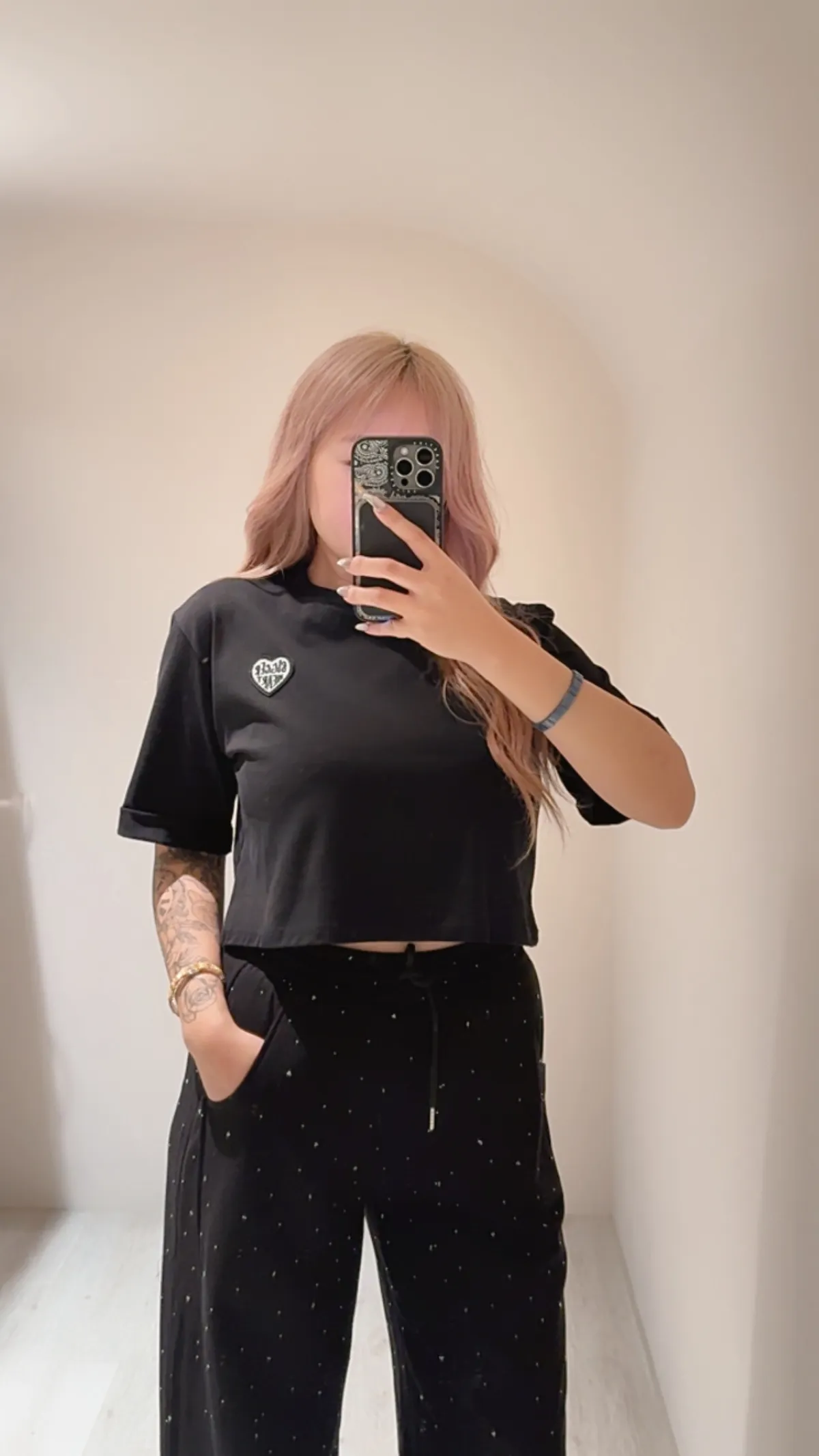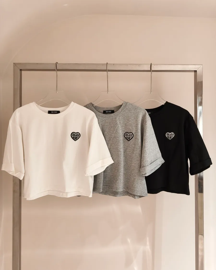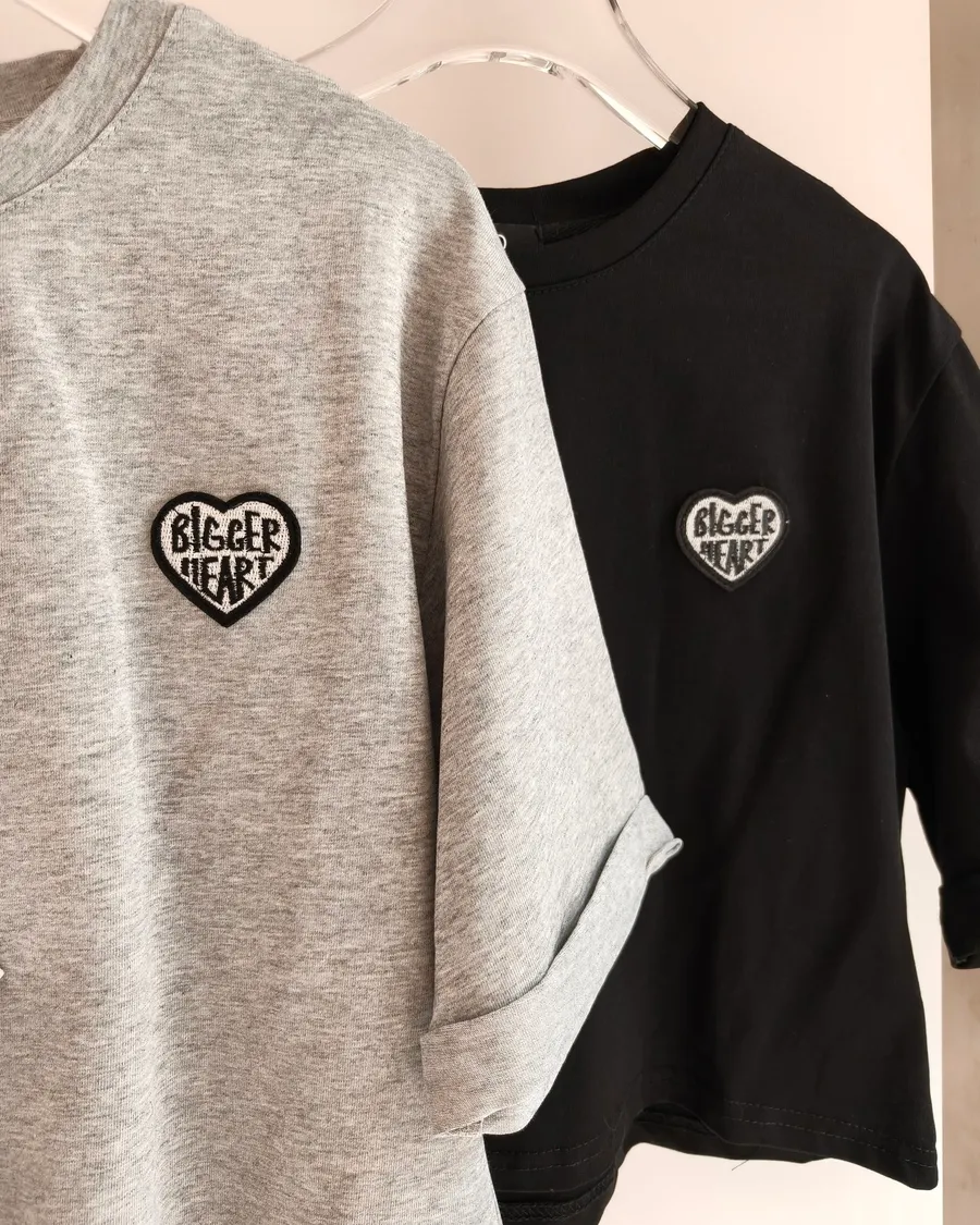 BiggerHeart反折袖愛心刺繡寬鬆短T🤍🖤