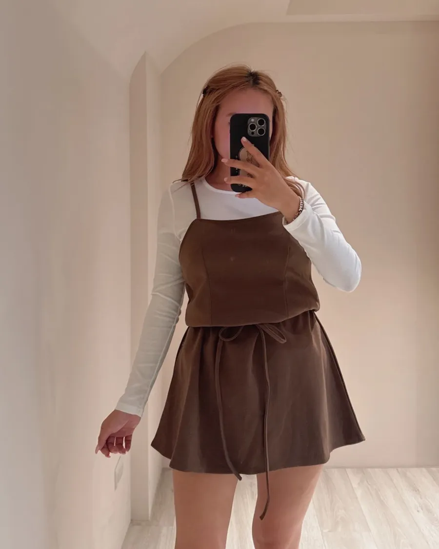 兩穿綁帶顯瘦洋裝✨含內搭衣