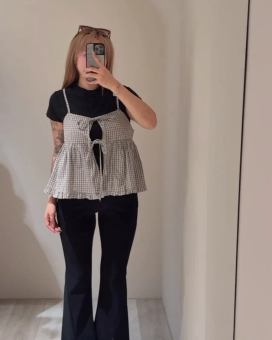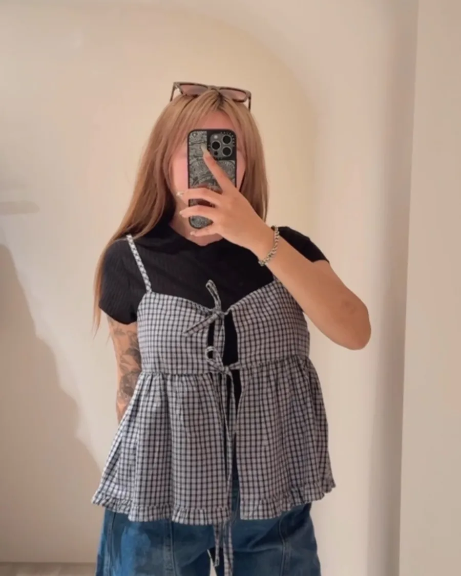 微肉女孩的最愛🤍遮小腹疊穿神器格子外罩