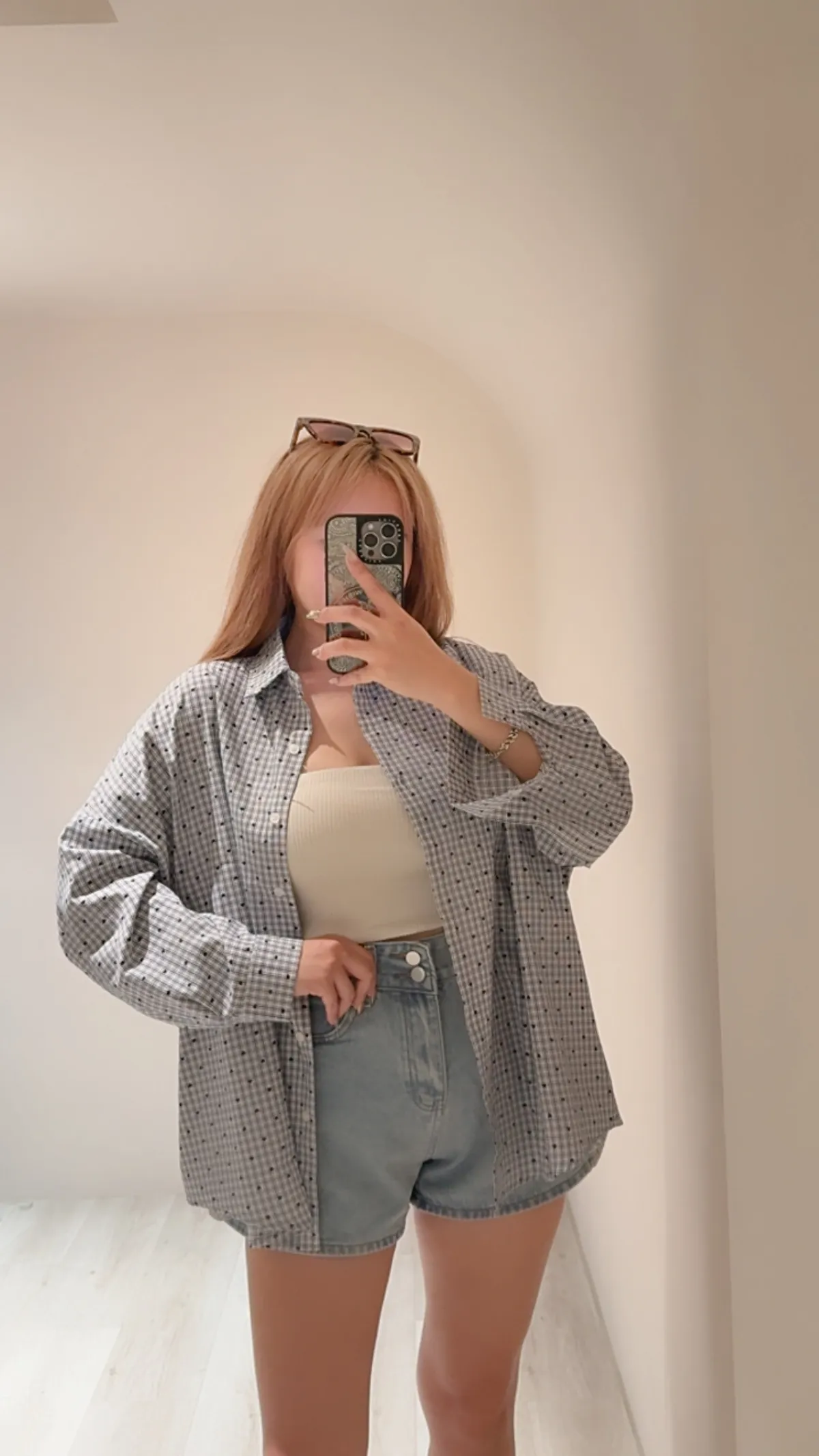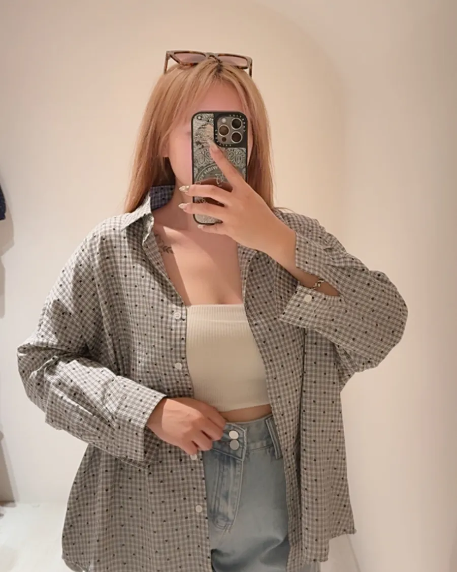 夏日微風薄透感格紋口袋大襯衫