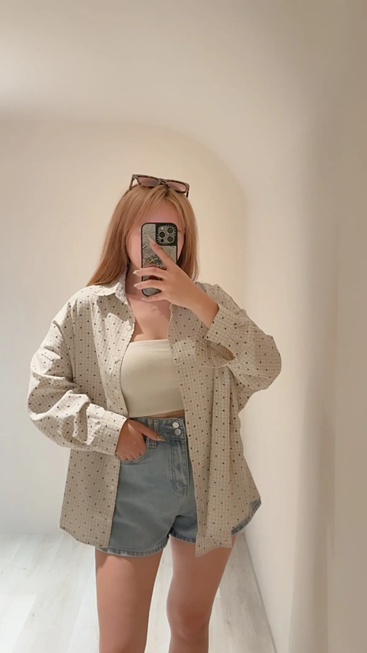 搭配簡單的背心與牛仔短褲