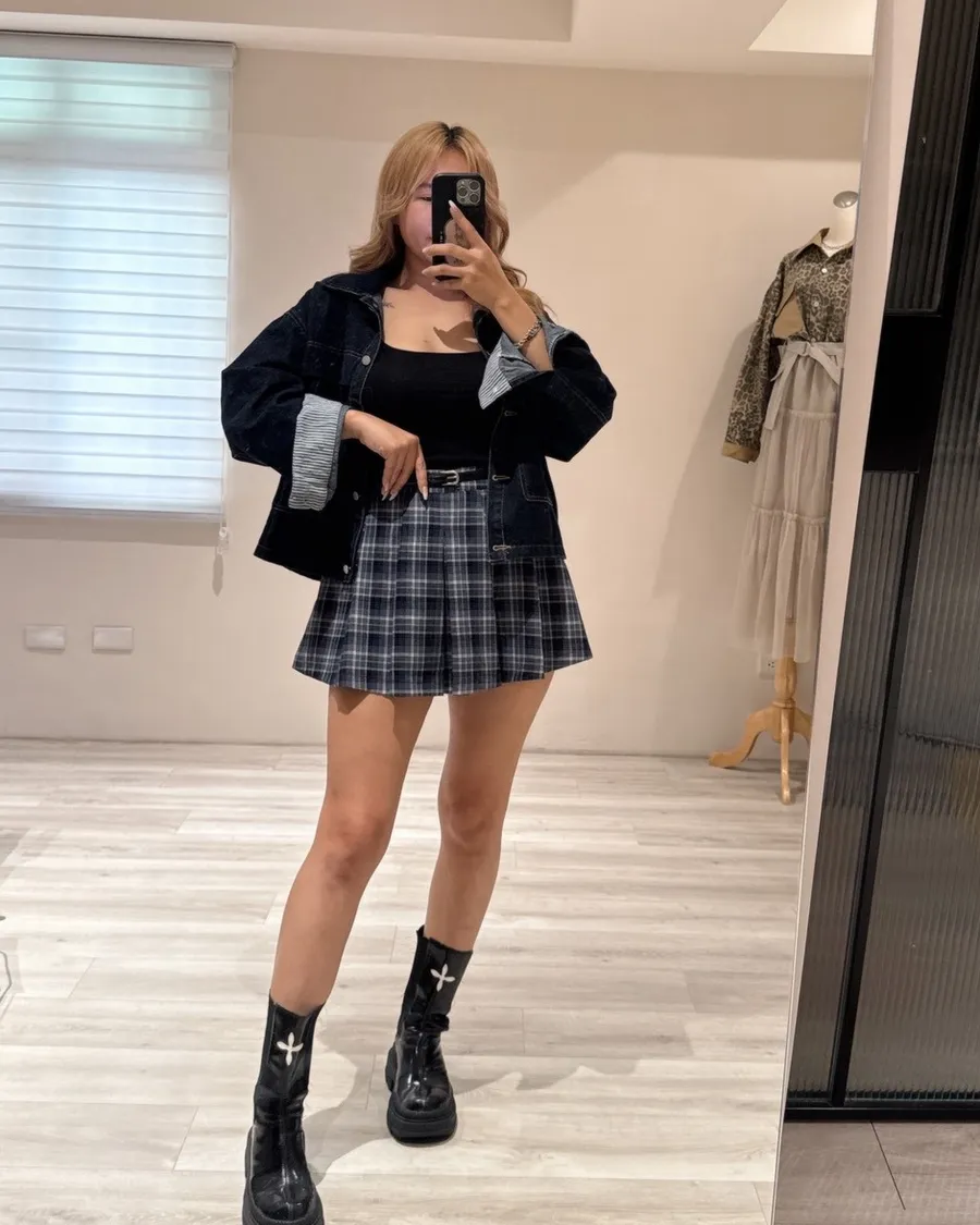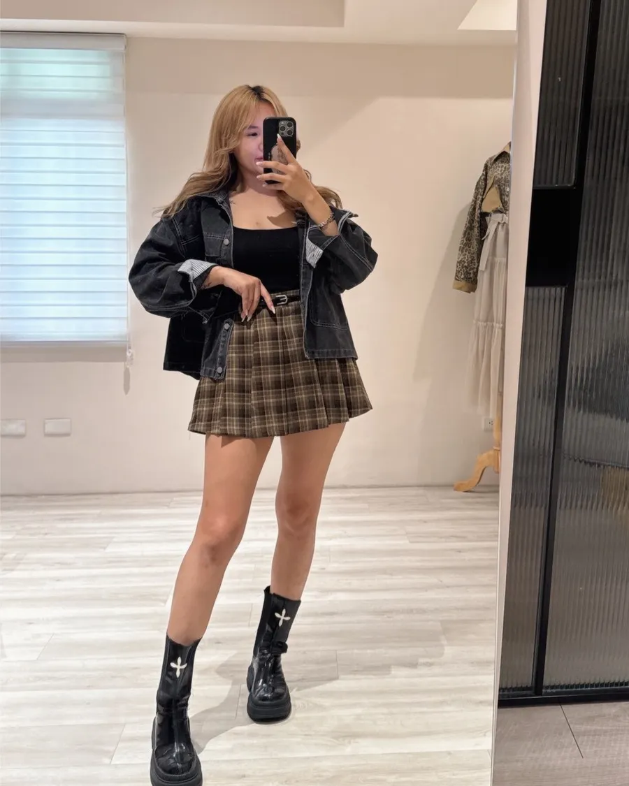 「一穿上就自帶腰身比例」前面是挺版高腰設計背後藏著彈性鬆緊腰頭視覺上俐落、實際上超舒服!不管是吃飽還是出門一整天都不會卡肉😍整圈立體百摺+霧感格紋布料內裡有褲子不怕走光一年四季都能駕馭的厚薄度隨意搭任何上半身都好看🙌🏽