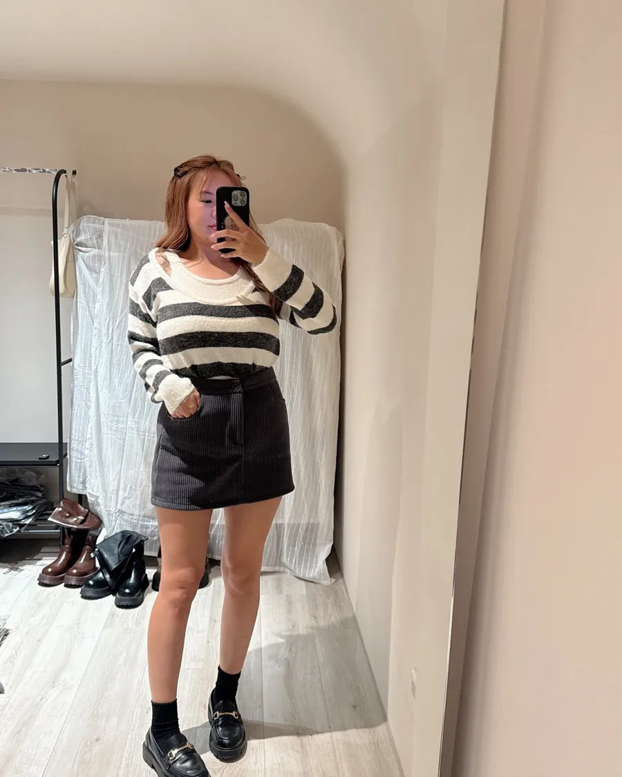 自然露出鎖骨線條,慵懶又帶點性感氛圍