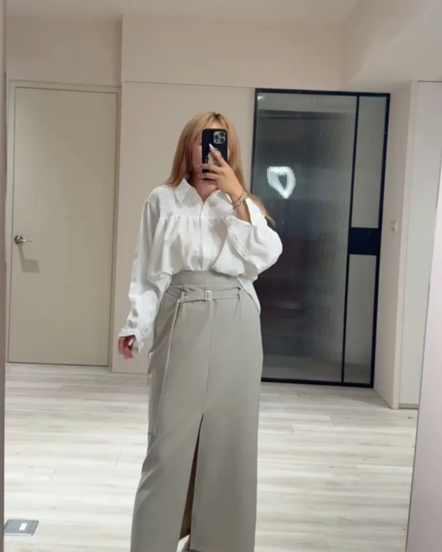 俐落的西裝布料結合高腰剪裁前開衩設計,修飾腿型走動時更添一點小性感腰間附有同布腰帶,收腰效果超明顯長度適中,不論搭小白鞋走休閒路線或是換高跟鞋出席正式場合都能一秒轉換氛圍🙌🏽✔ 高腰+腰帶,完美顯比例✔ 開衩設計,行走更有層次感