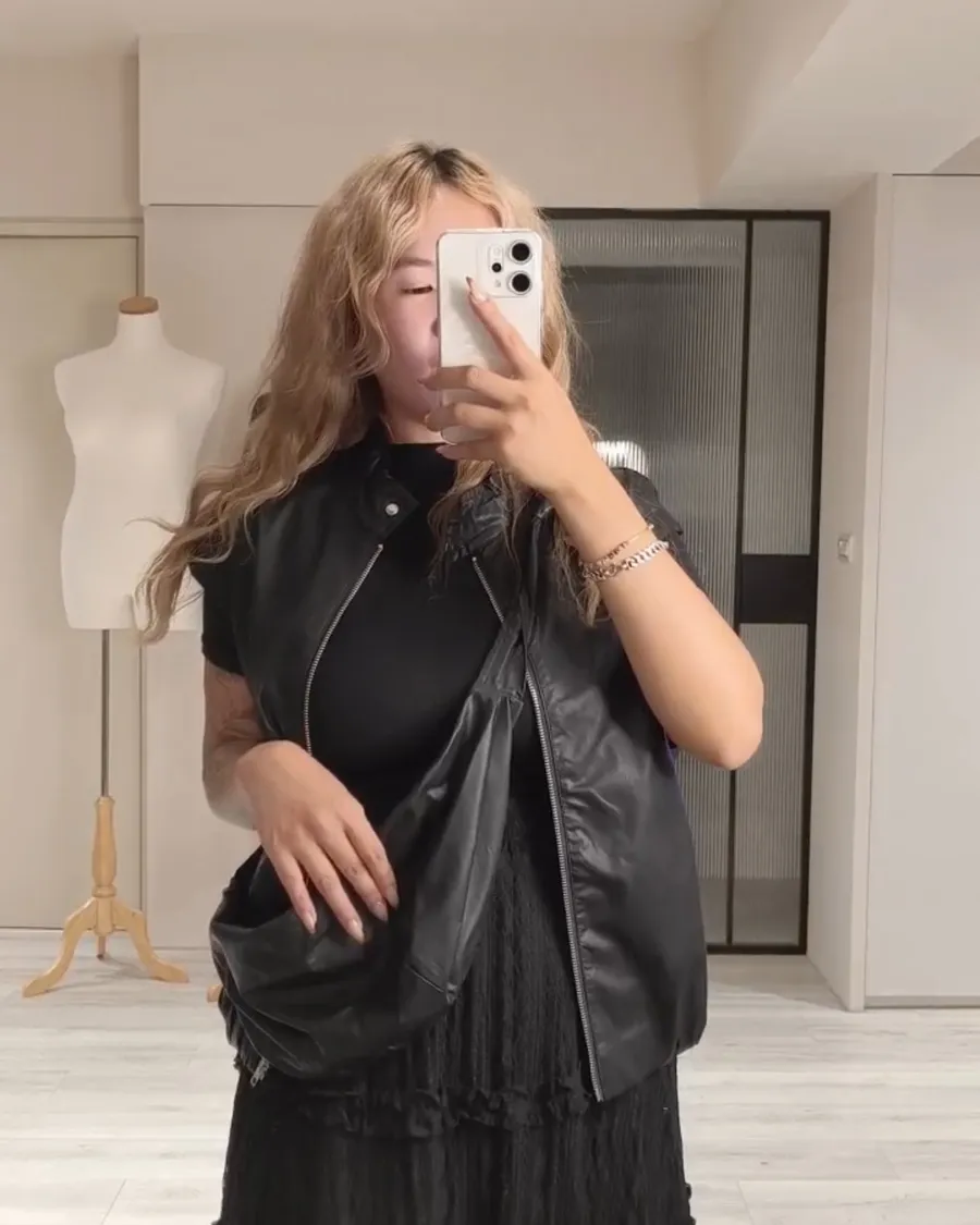 薄款皮革+小飛袖設計