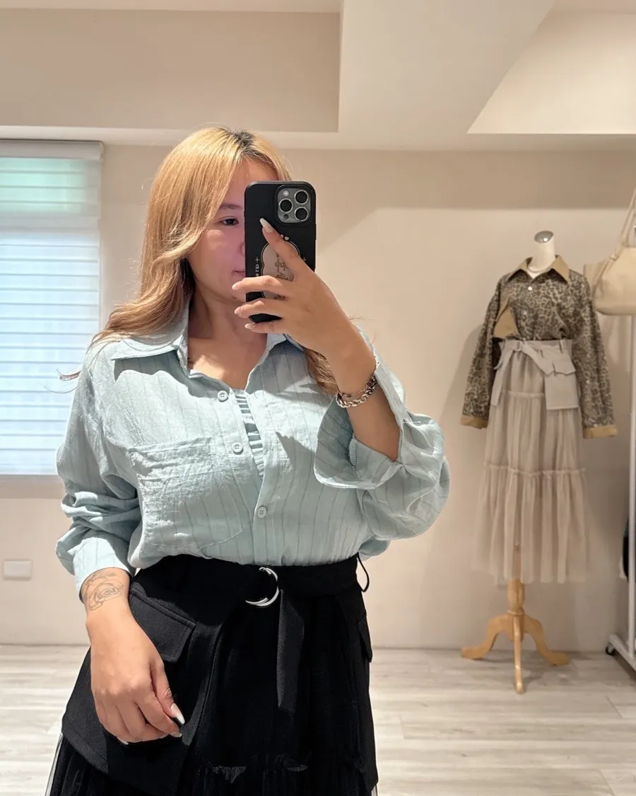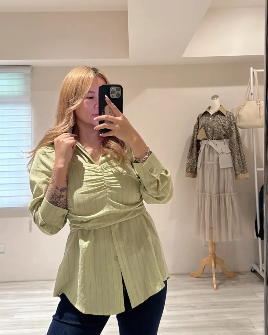 「買一件=擁有三套穿搭✨」 上班、出門、約會全都能穿出不同感覺, 今年秋天最值得入手的多穿法襯衫💚 立體壓褶小可愛 胸口剪裁自然集中、視覺顯瘦 襯衫微透紋理感布料 不挑季節一年四季都能穿 微寬鬆落肩版型 修飾手臂線條不顯壯