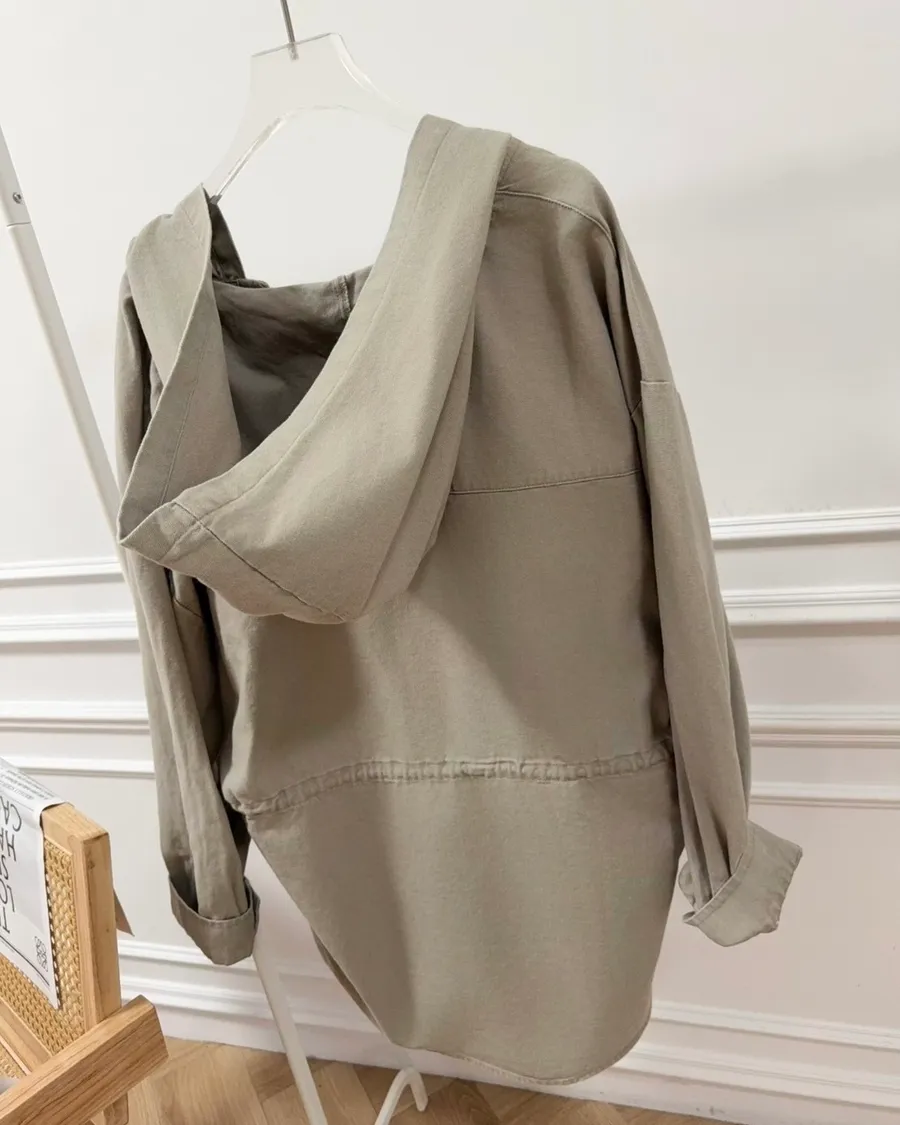 不挑季節都能穿的水洗丹寧連帽風衣🍂