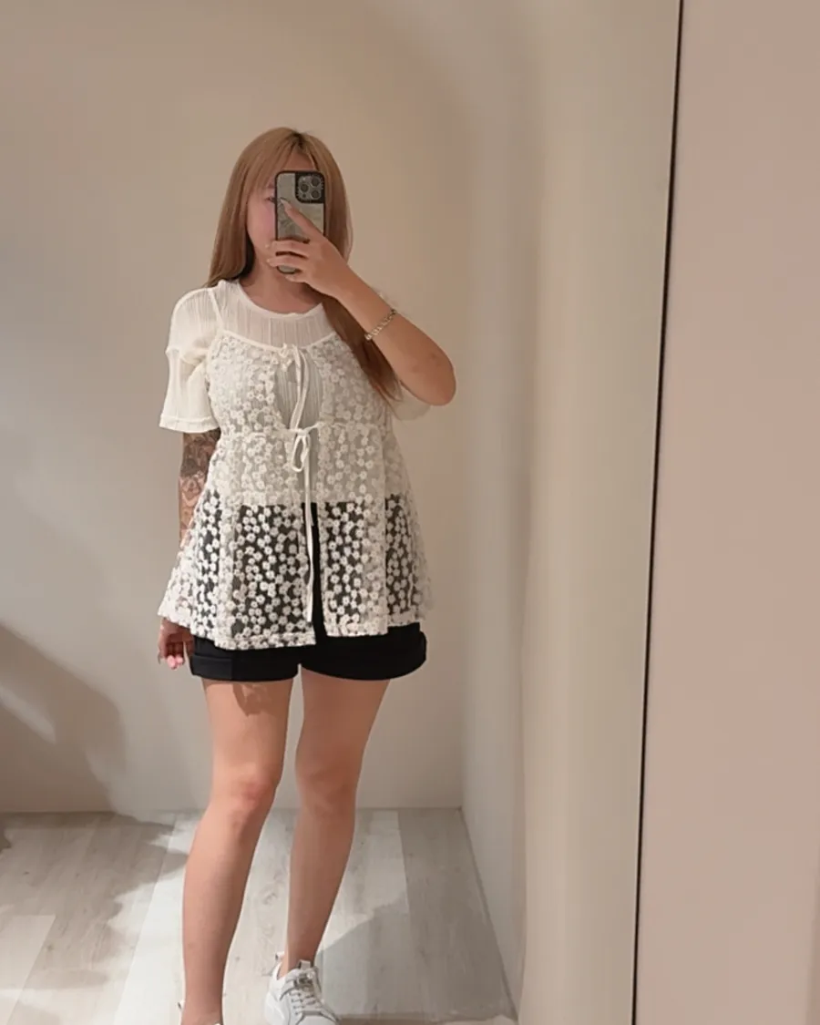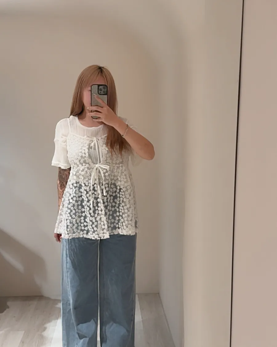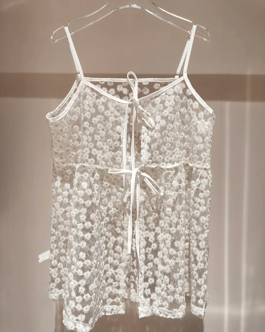 奶油雛菊繫帶透膚仙女罩衫🌼