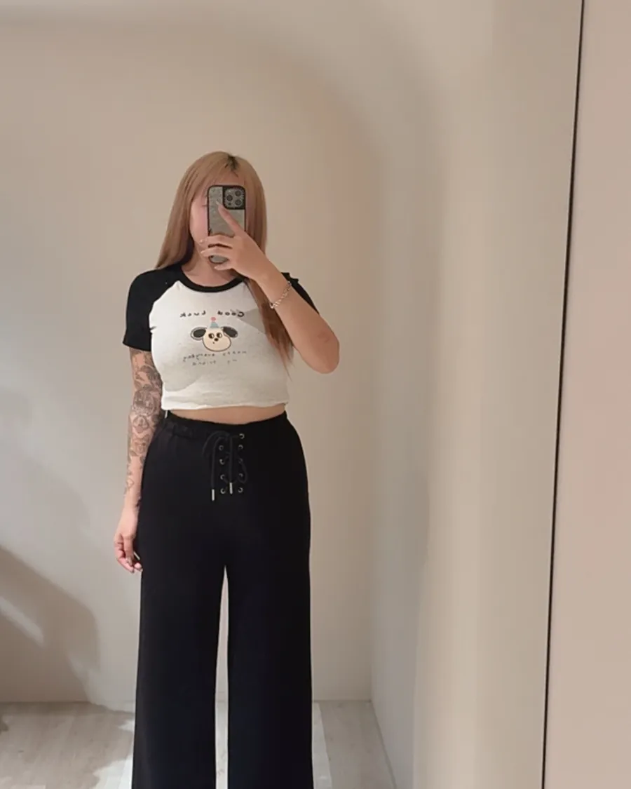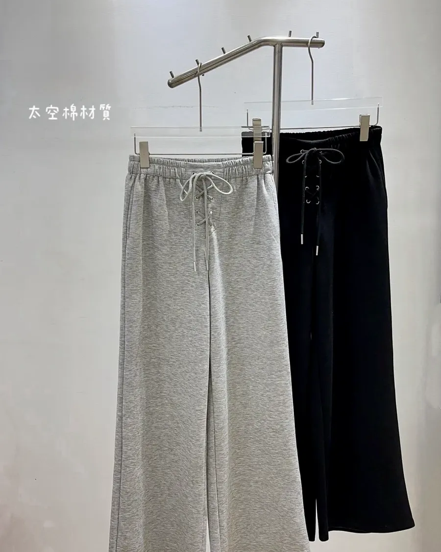 【顯瘦必備】太空棉挺感綁帶直筒棉褲