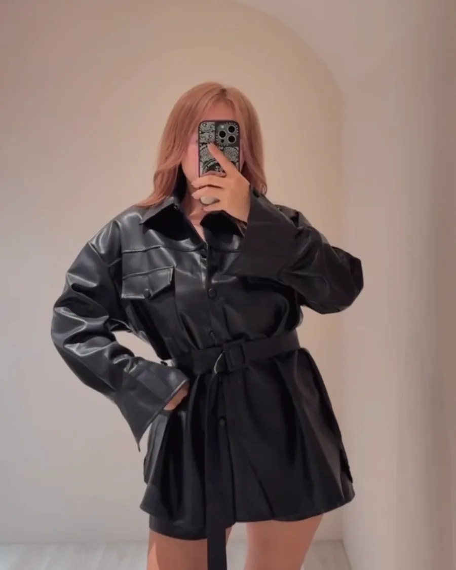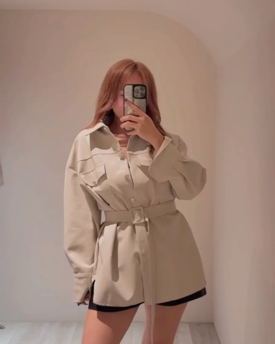 情侶款👩🏻❤️👨🏻霧面質感皮革襯衫(附腰帶)