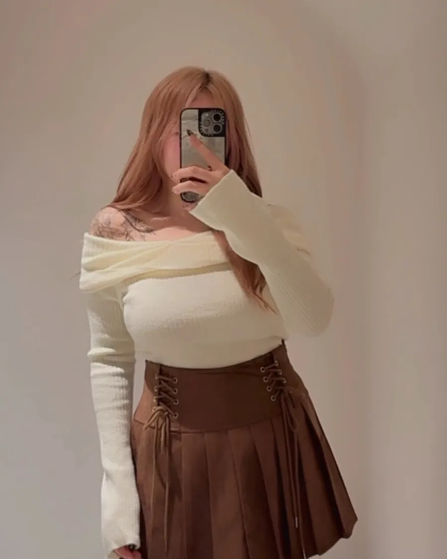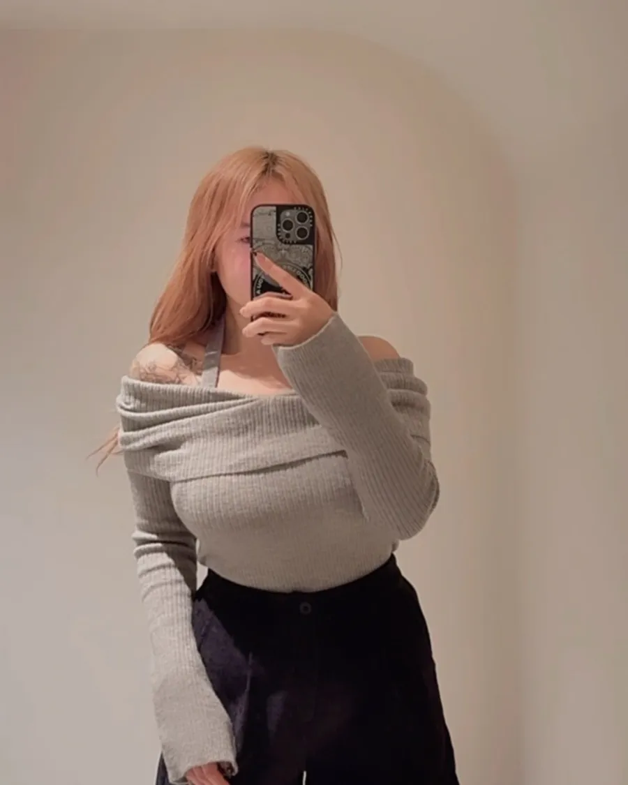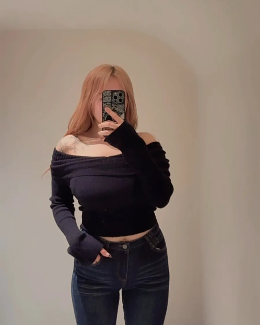 落肩的削肩線條剛剛好地露出最迷人的位置😍