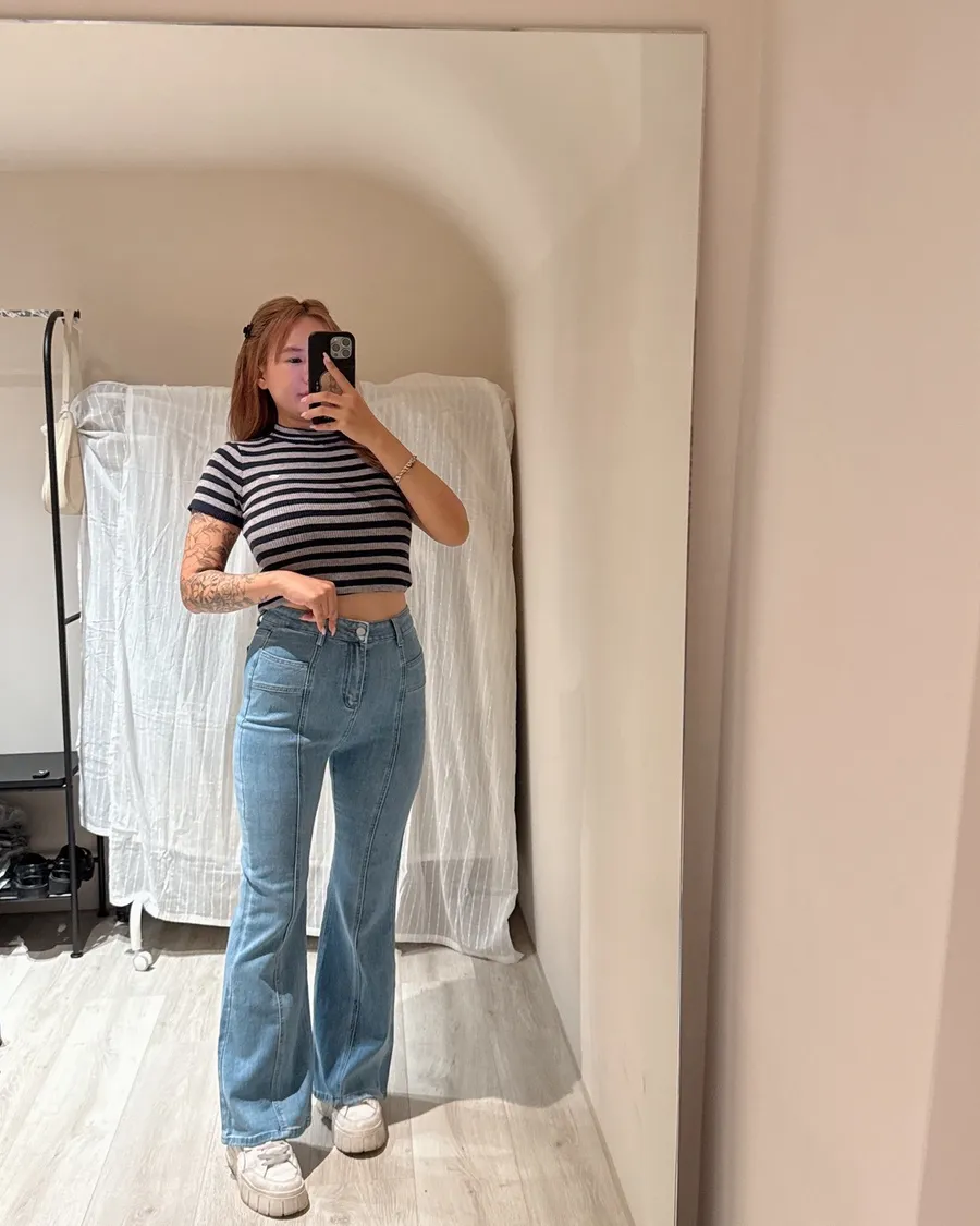 視覺瘦身高腰丹寧喇叭褲