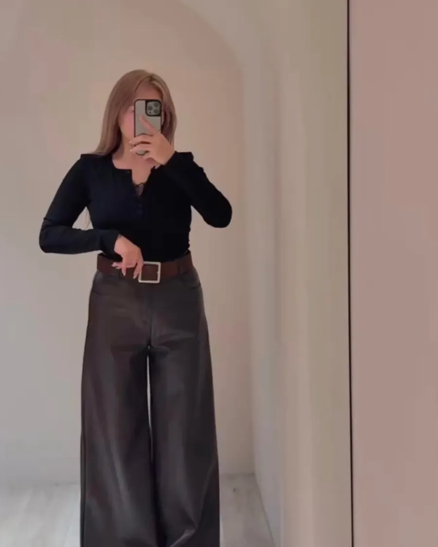 視覺秒瘦6公斤大長腿皮褲🤎