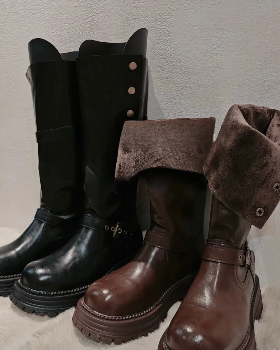 厚底設計加上俐落線條✔️側邊排扣可自由調整✔️可翻領變短靴!一穿上直接拉高比例質感厚實的鞋面搭配質感油蠟皮🙌🏽質感爆表跟市面上一眼就便宜的靴子完全不同不管搭短裙、襯衫還是寬褲都很加分踩起來穩又不重今年秋冬出門必備的一雙靴子✨⚠️靴子尺寸非常多!所以沒有囤貨⚠️全尺碼預購7-30個工作天⚠️屬於客製化訂單,預購無法貨到付款❗️