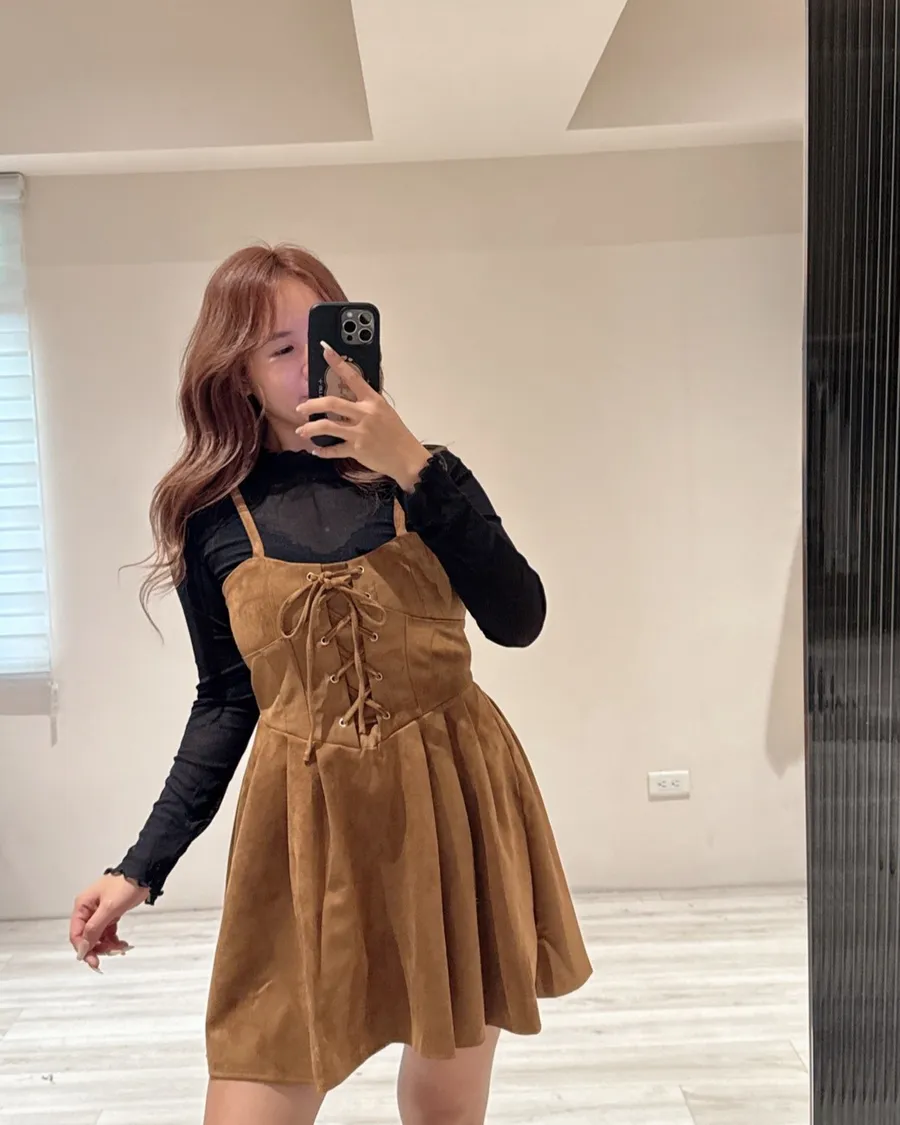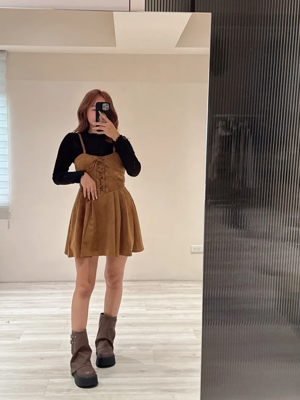 🤎🦌馬甲綁帶麂皮吊帶洋裝