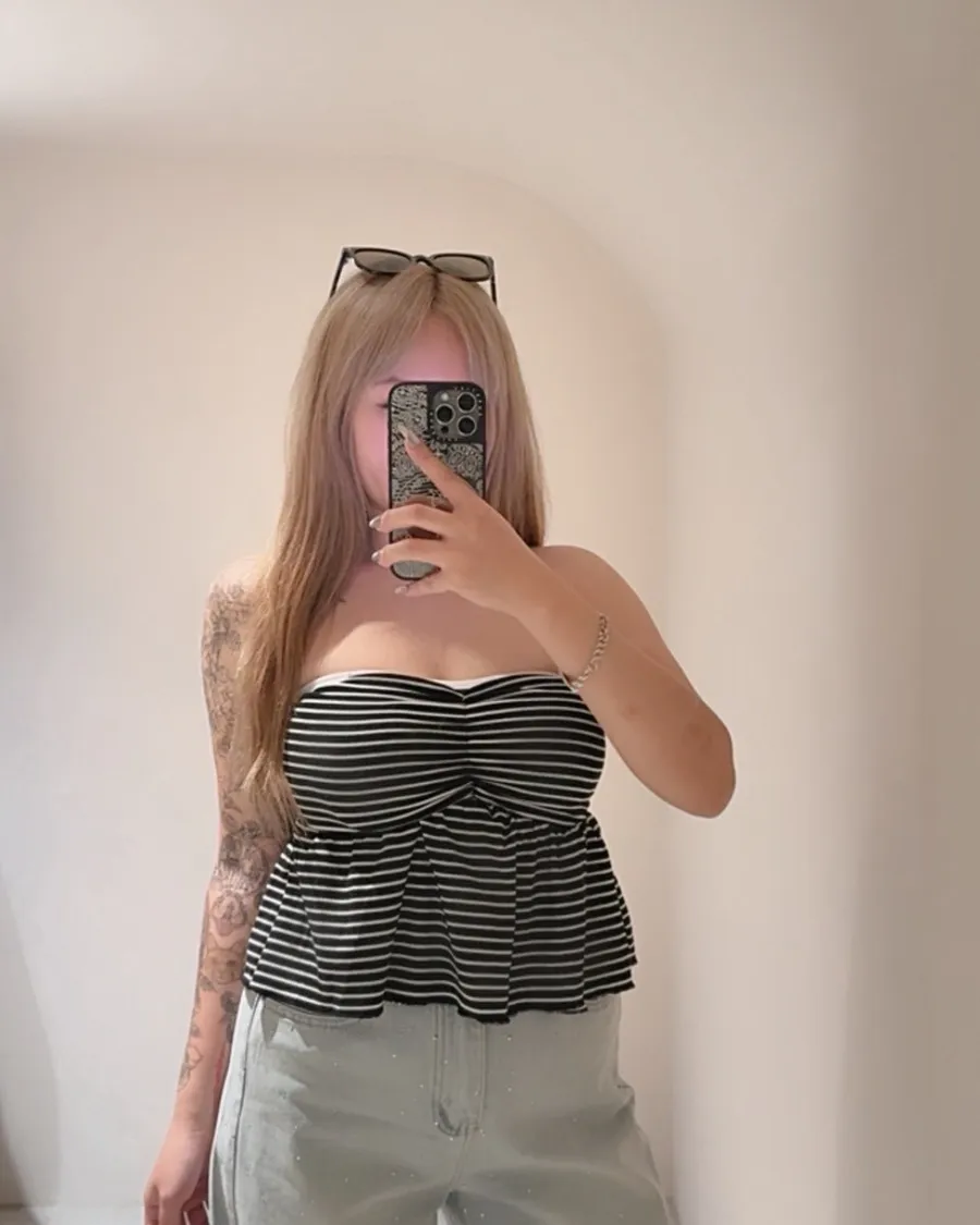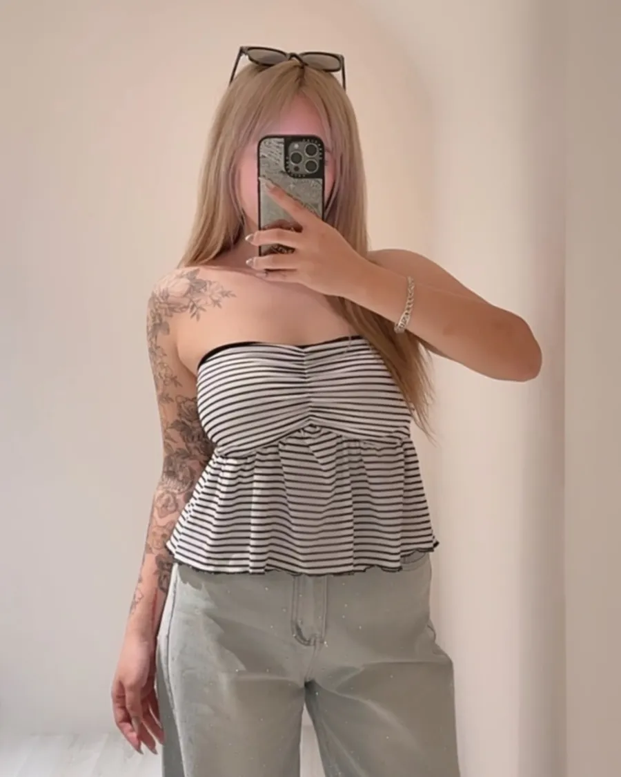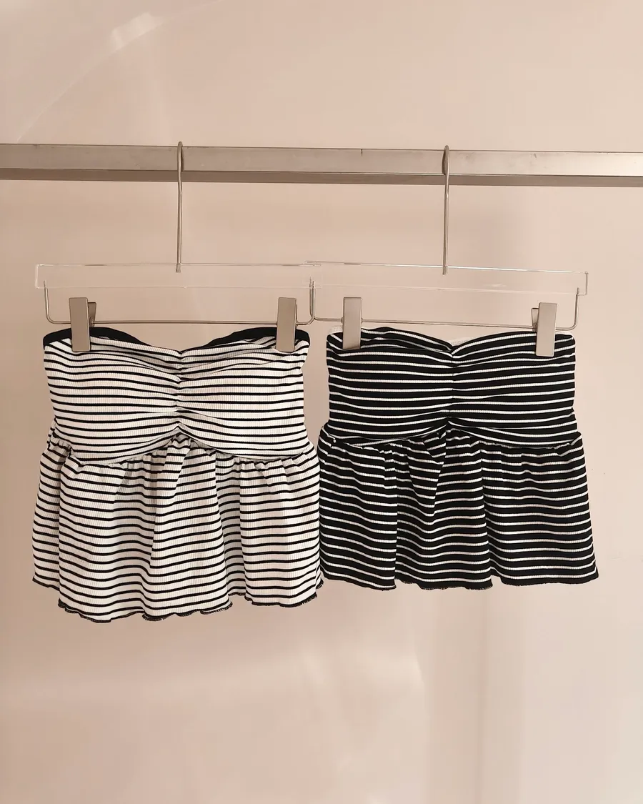 鎖骨殺手⚡️平口罩杯條紋荷葉上衣