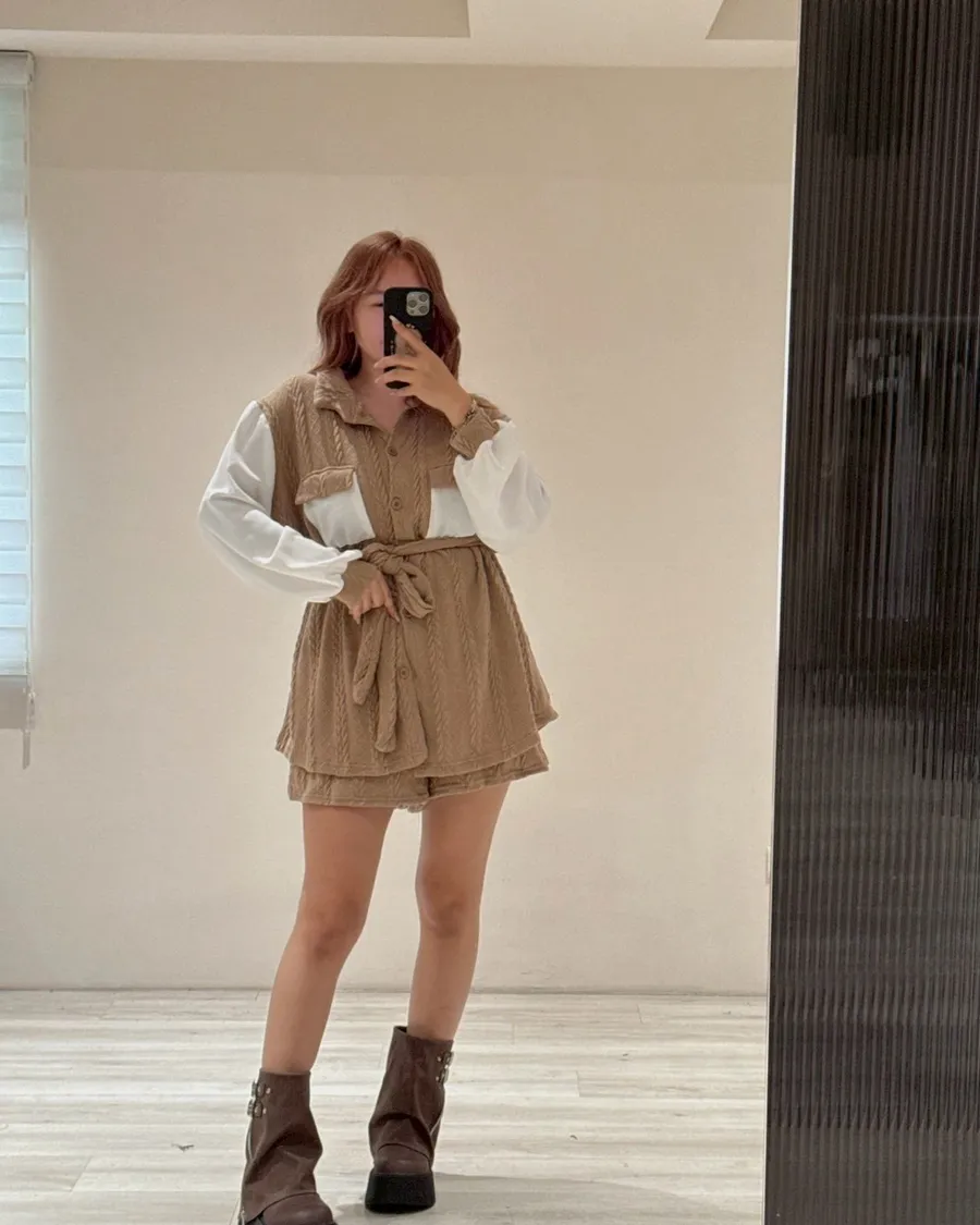 雪紡拼接🌬️麻花編織套裝