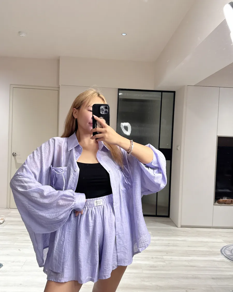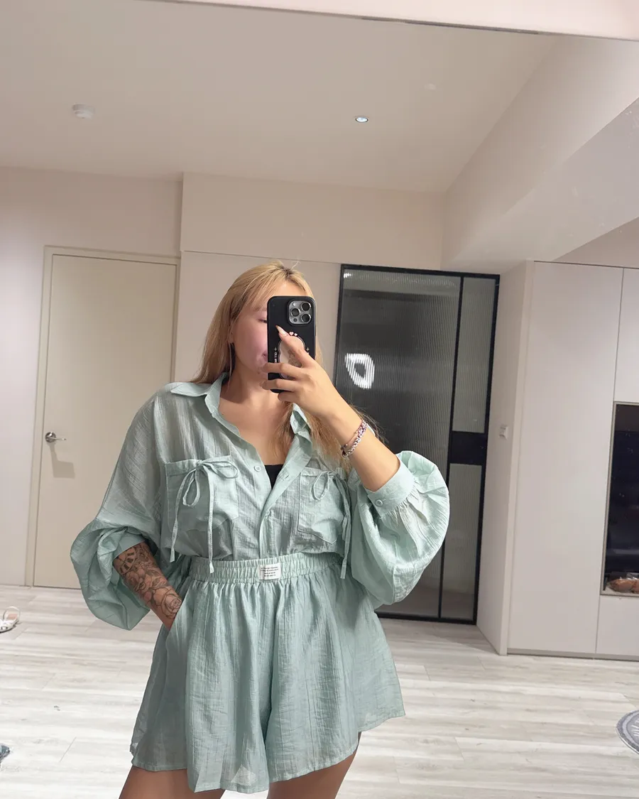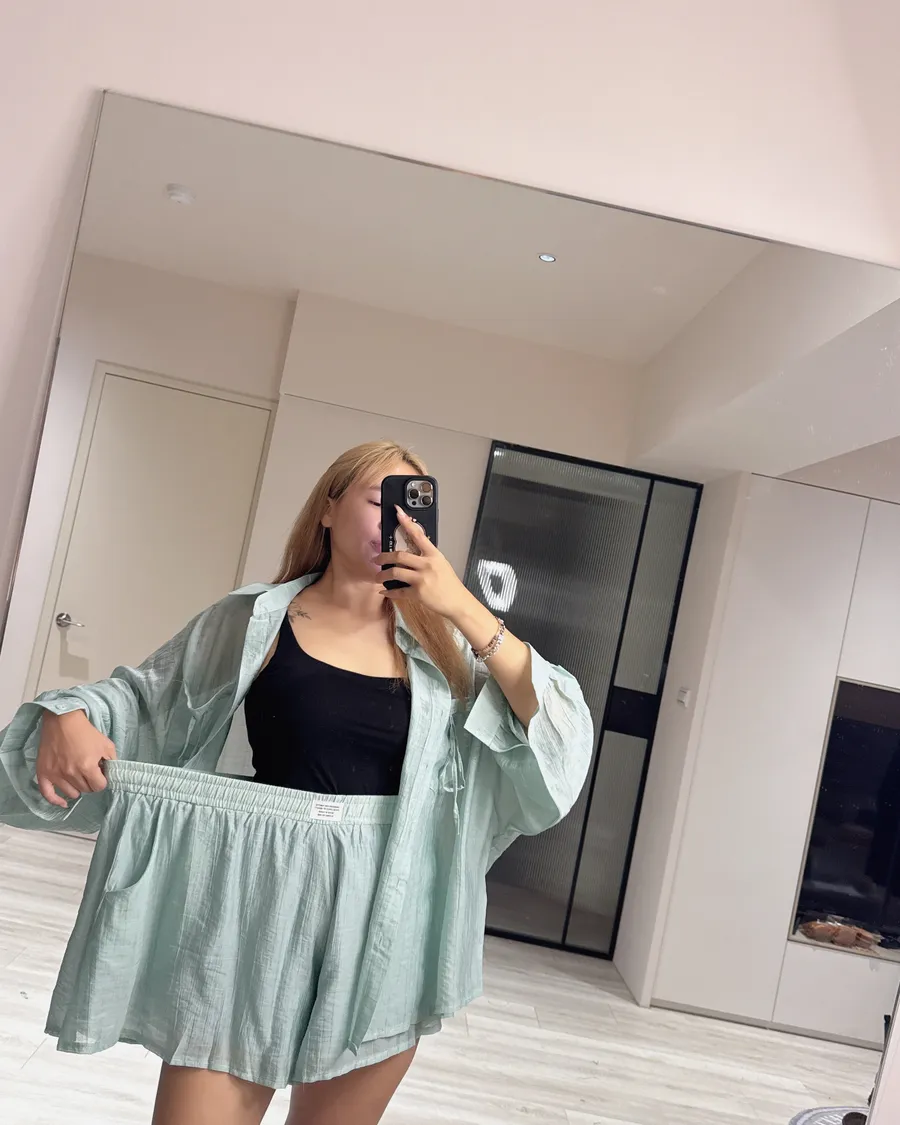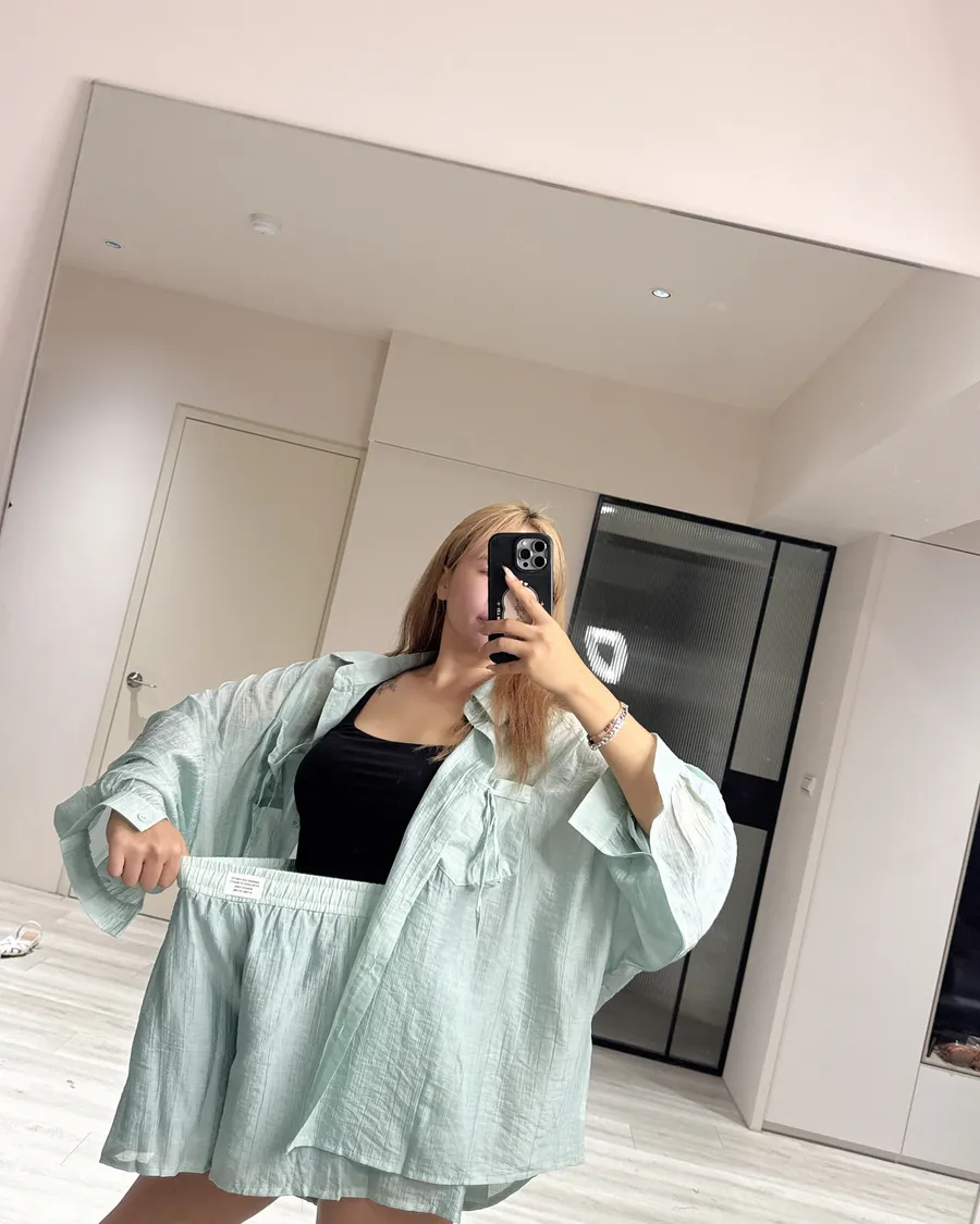 Oversize 襯衫遮肉顯瘦,高腰短褲修飾腿型
