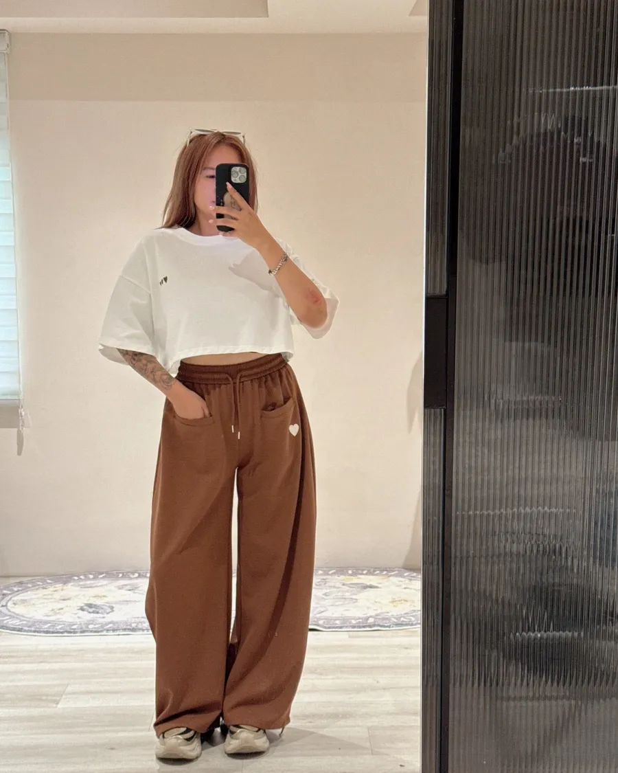 🖤愛心刺繡彎刀褲