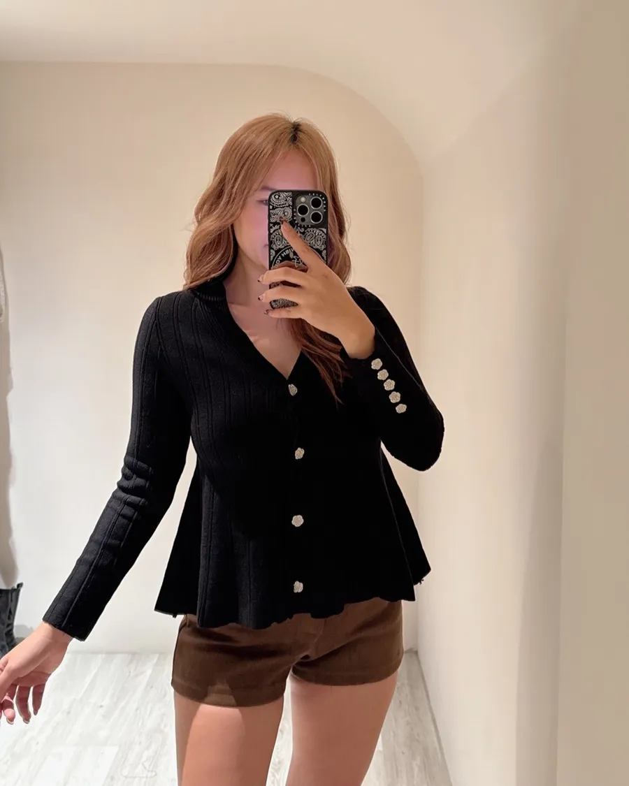 ✅山茶花排扣、重磅針織、胸以下全遮肉