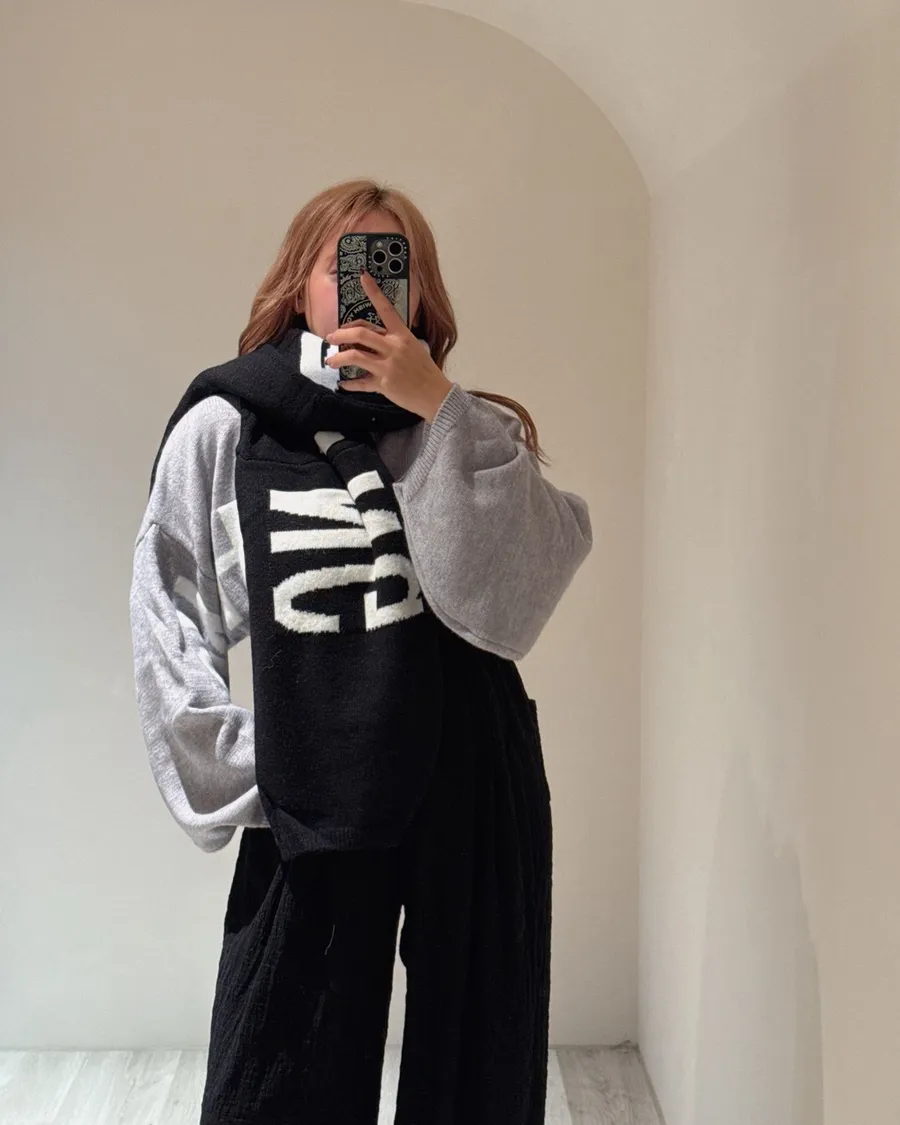 圍巾、罩衫兩用🙌🏽胸以下全是腿寬版針織上衣