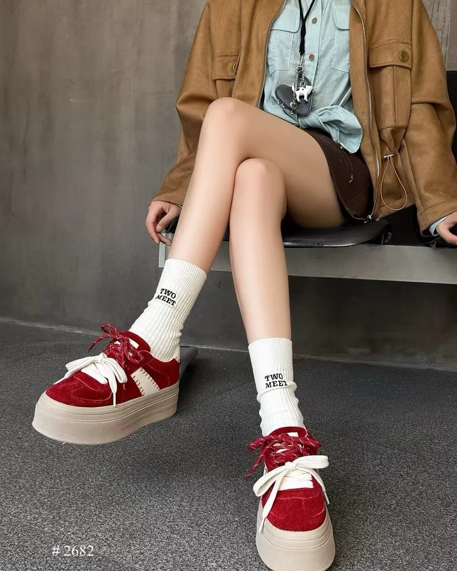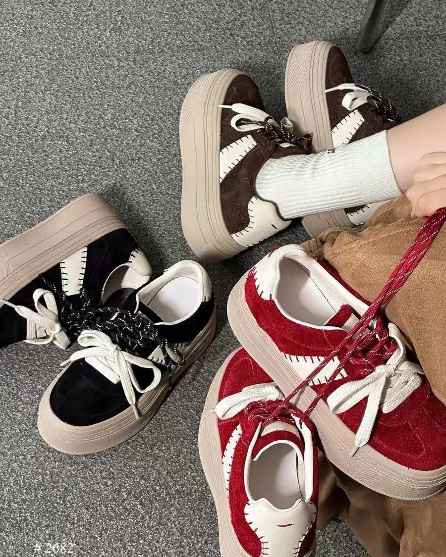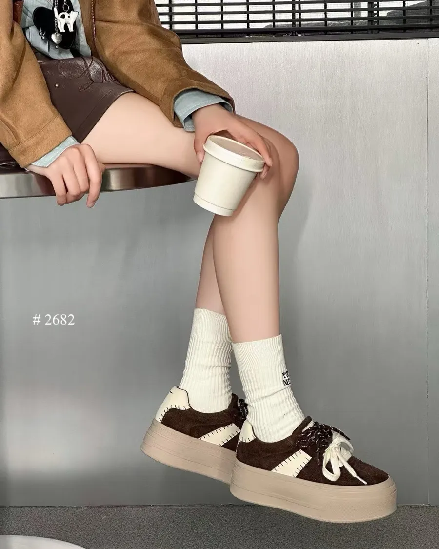 偷跑🐫真皮🐂韓系厚底拼色休閒鞋