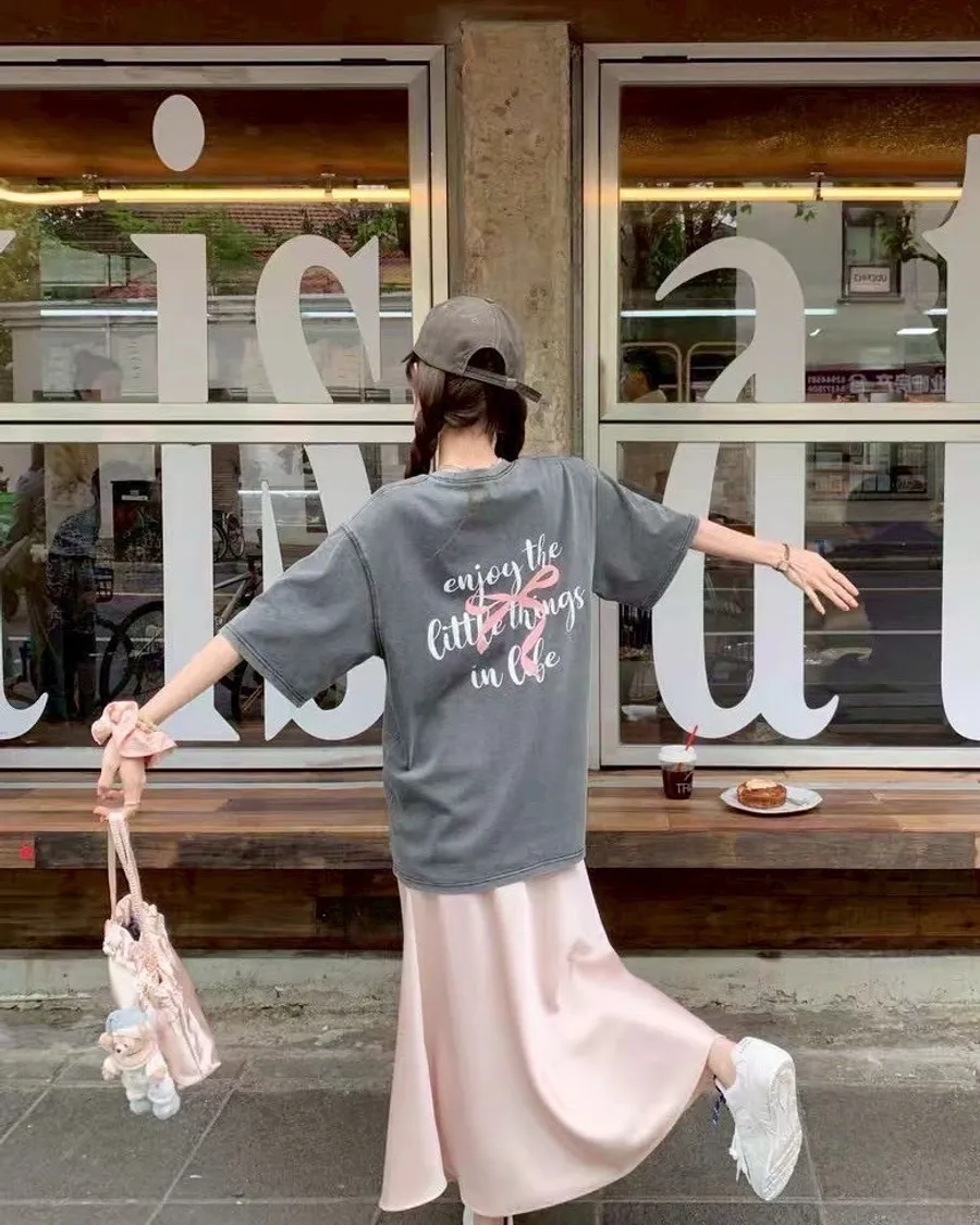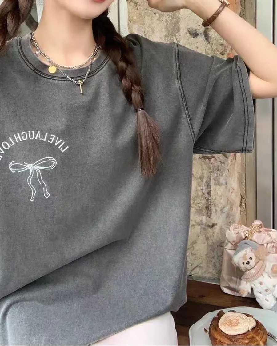 蝴蝶結🎀水洗灰大Tee(實體是深灰)