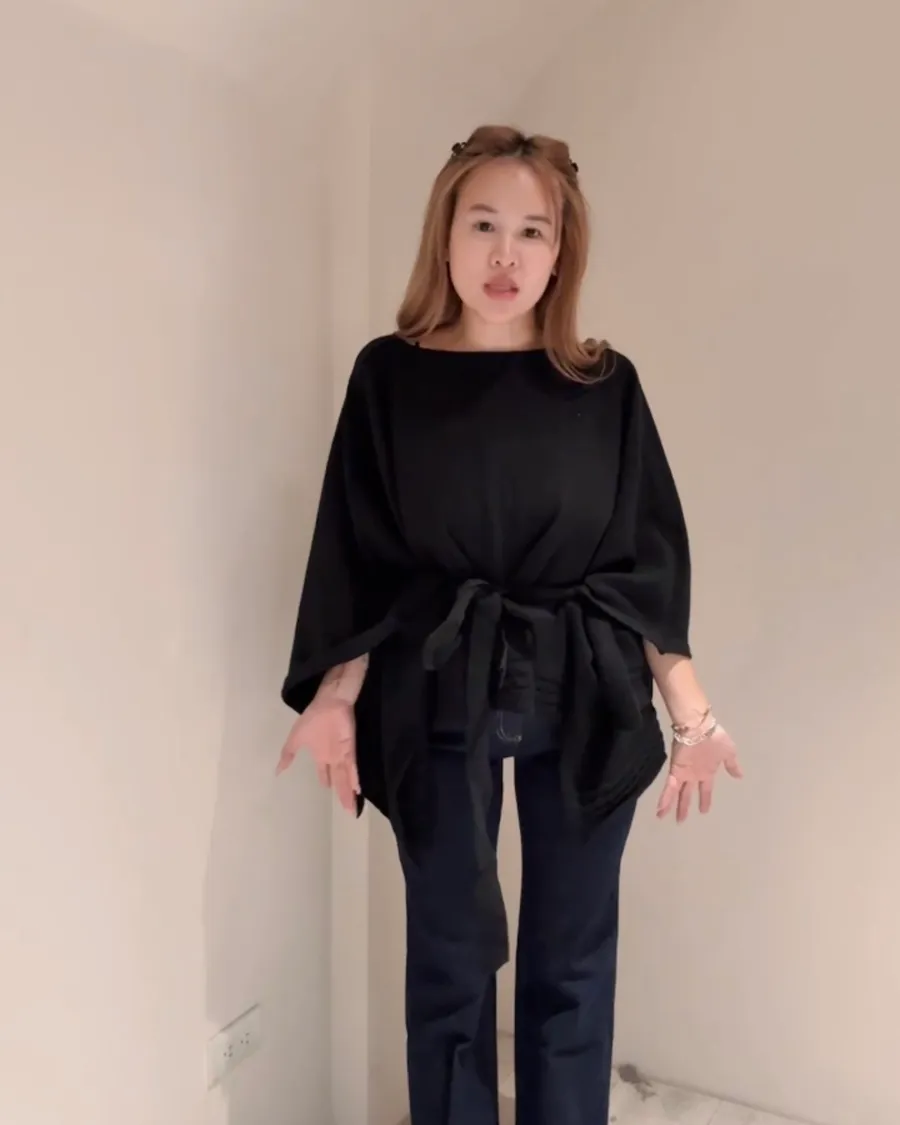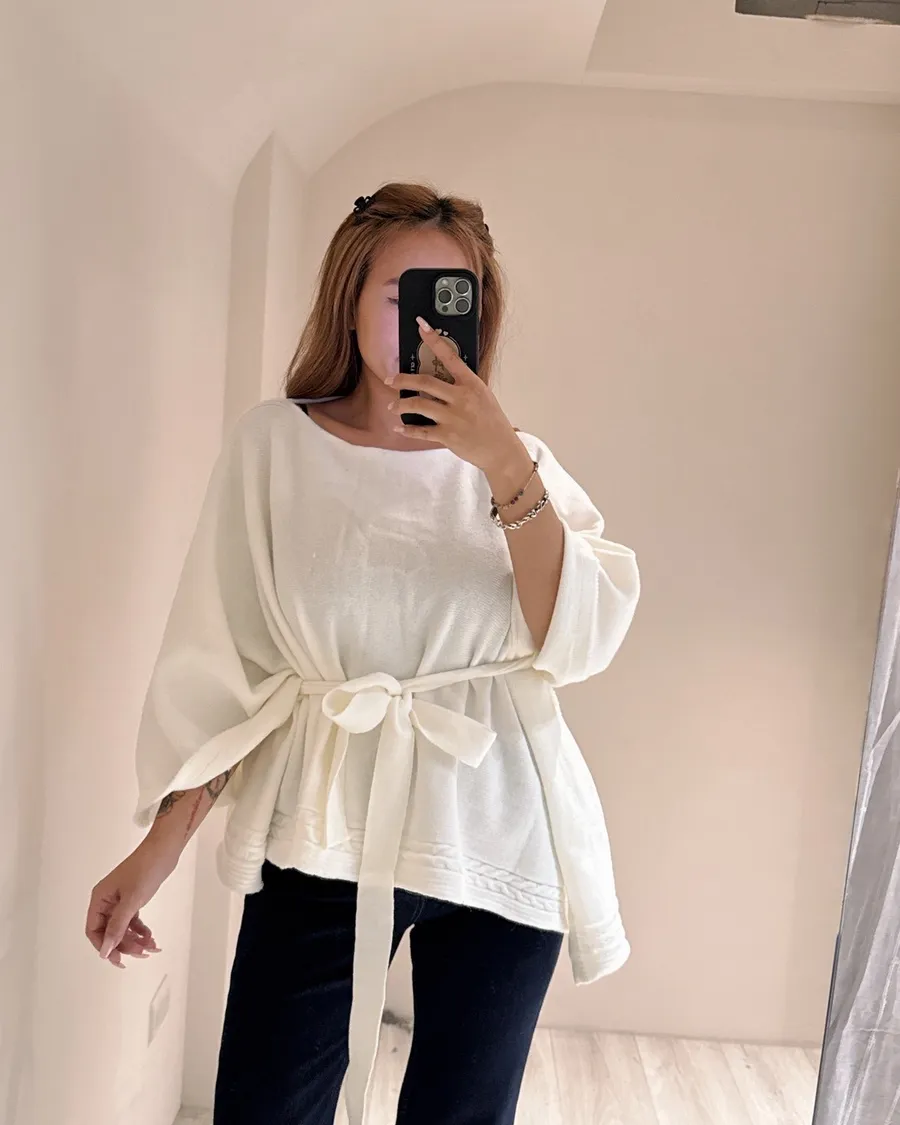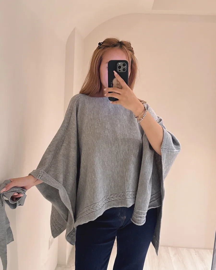 針織面料柔軟親膚,寬袖斗篷剪裁修飾手臂