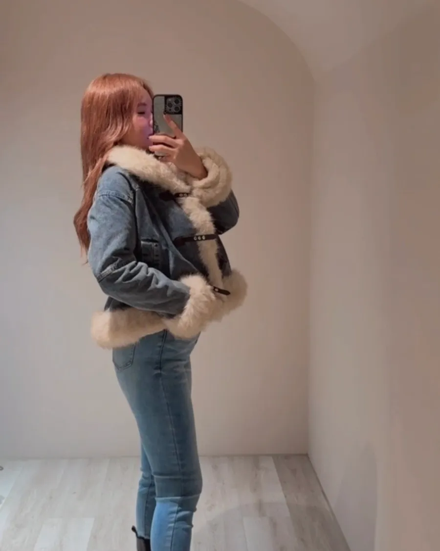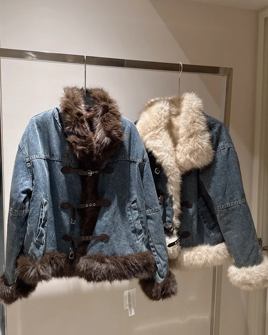 丹寧的挺度配上大片雪絨