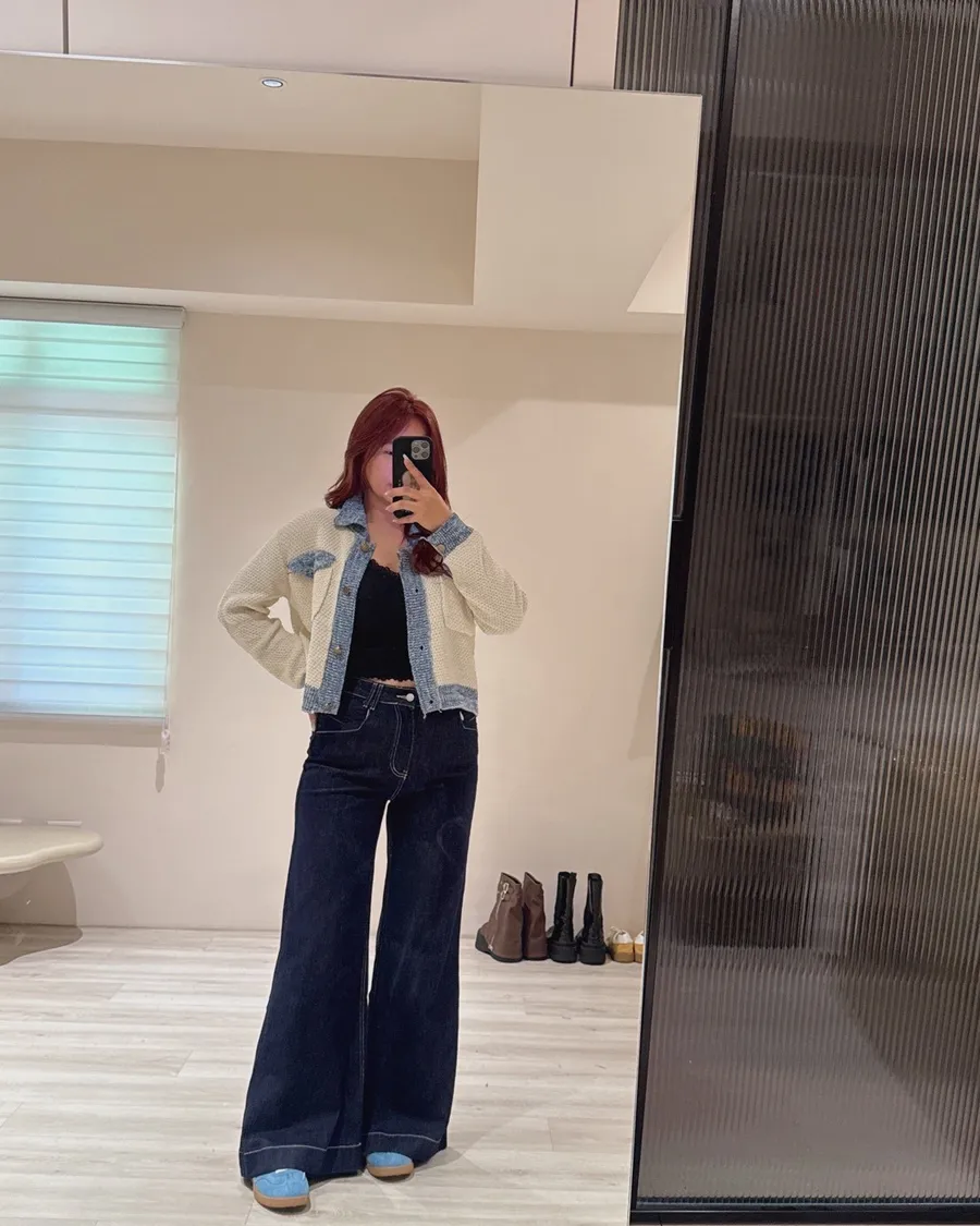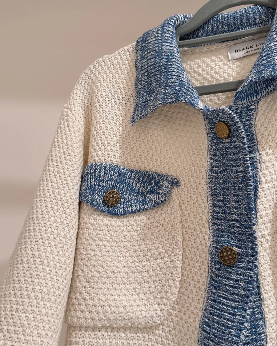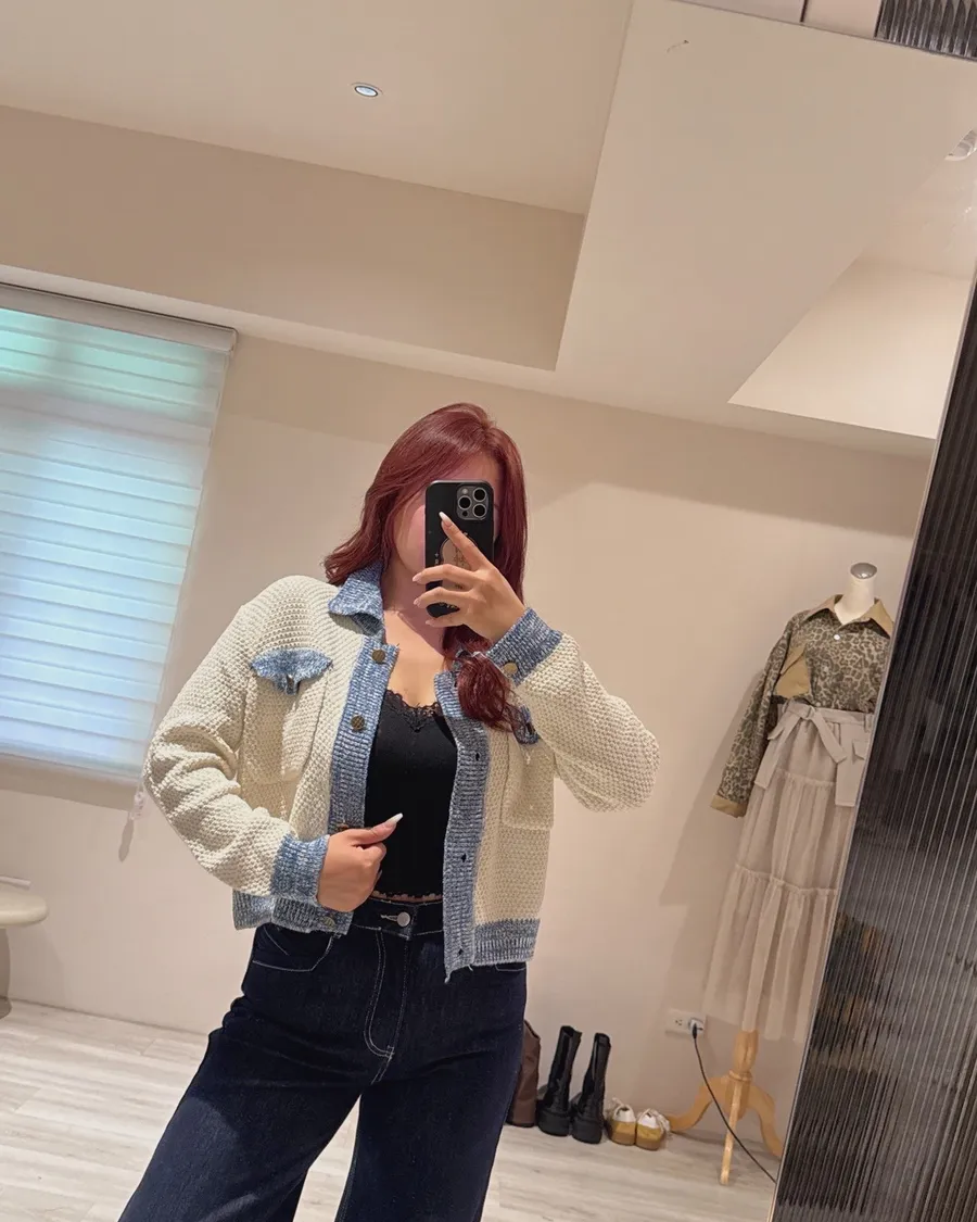立體織紋厚實有份量,釦子選用金屬復古銅紋