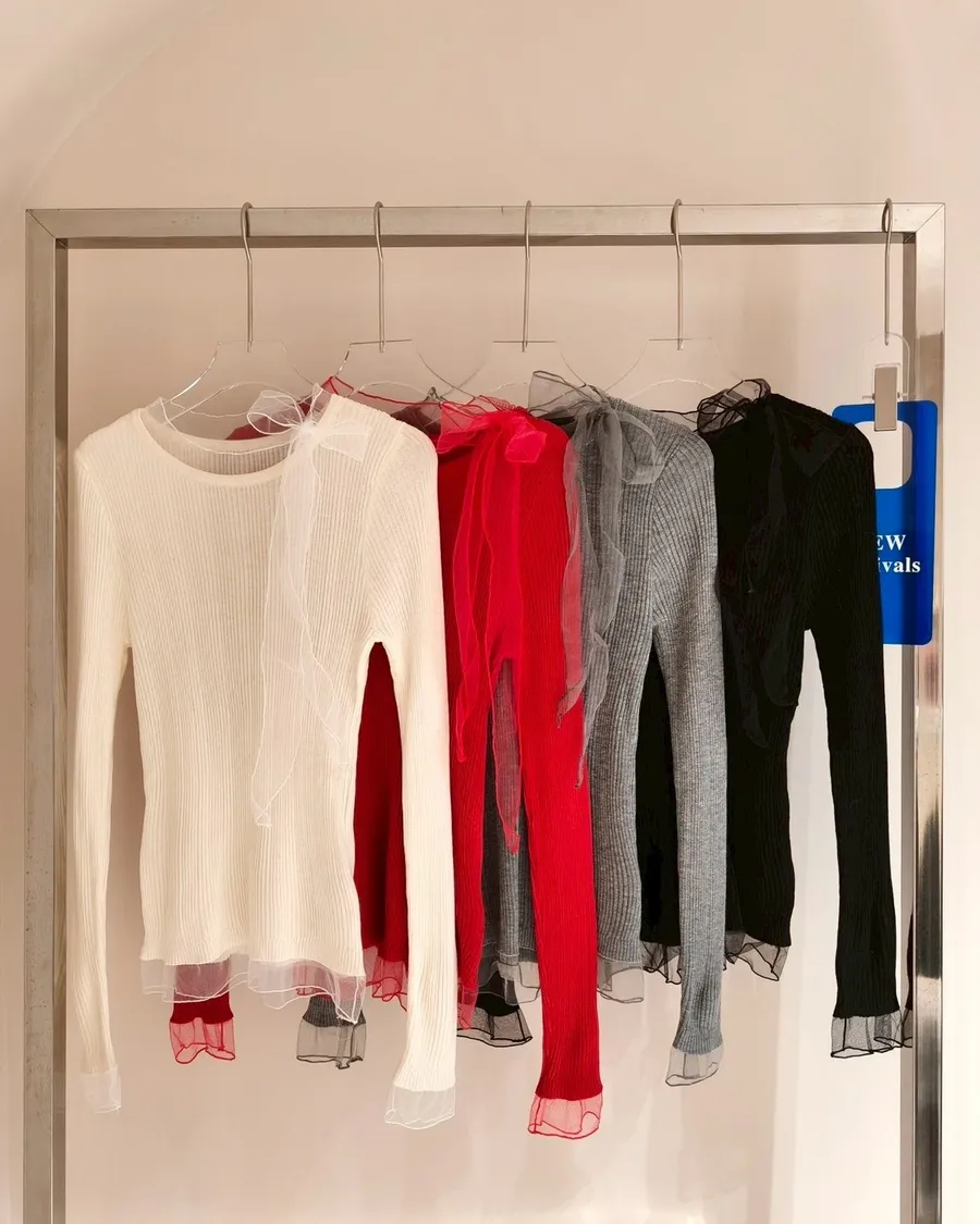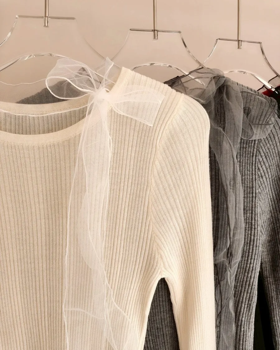 精緻女孩的小心機🤍蝴蝶結綁帶坑條上衣