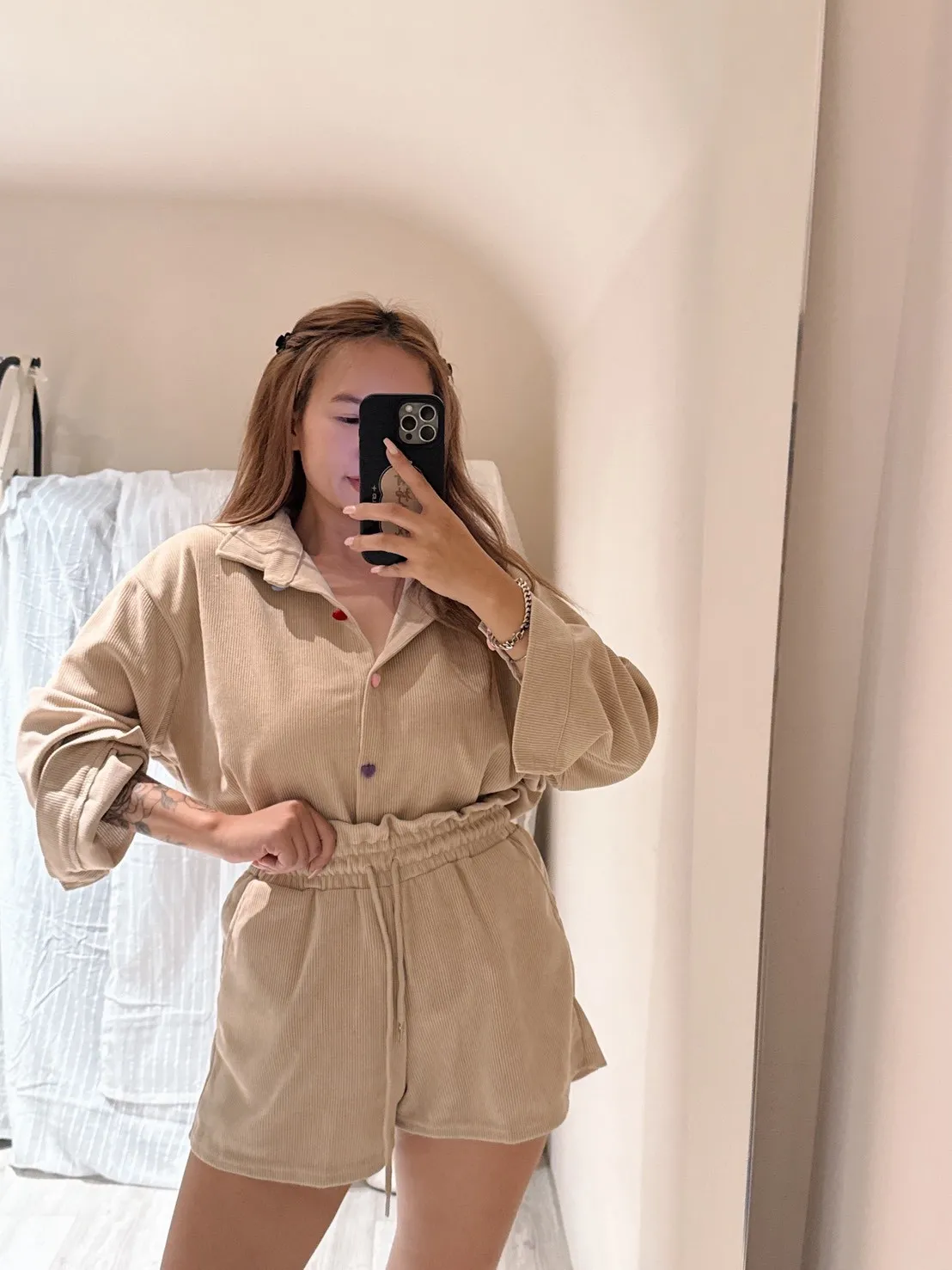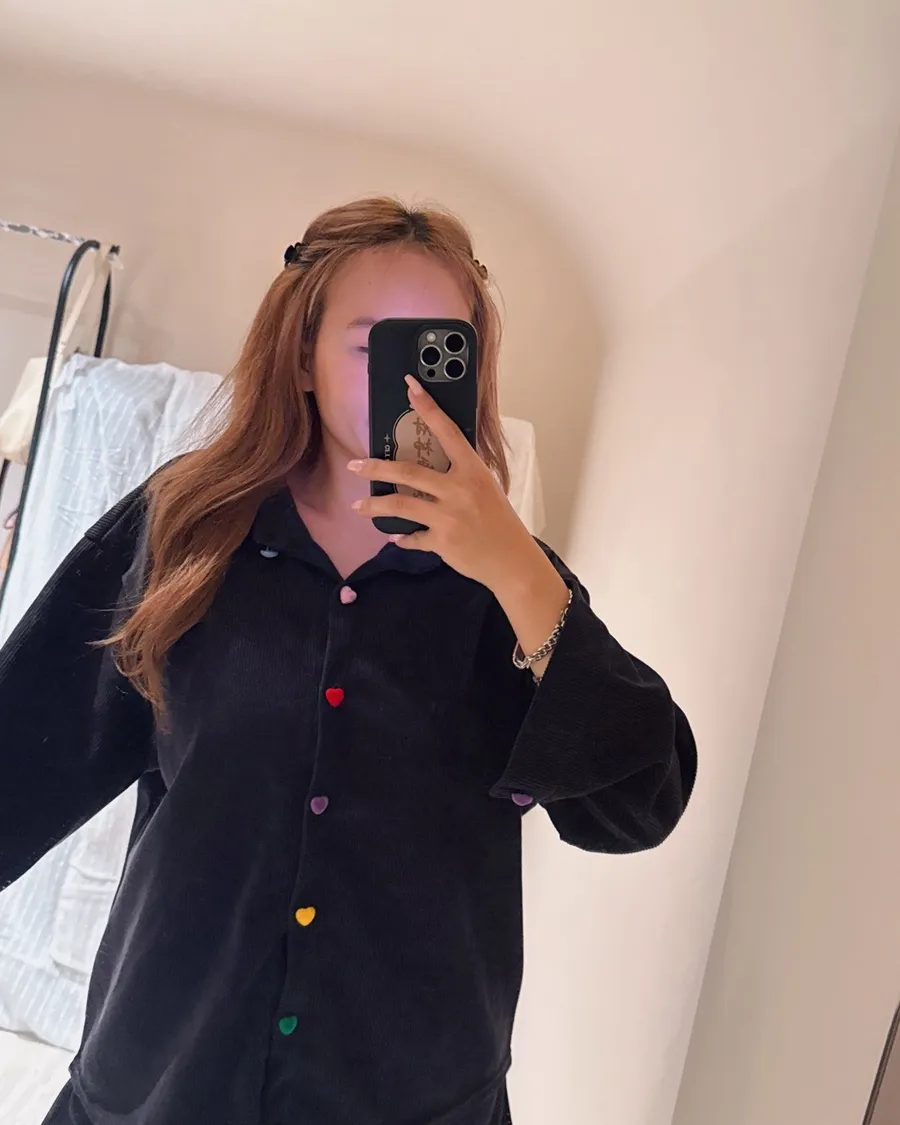 上衣做寬鬆版型搭配彩色愛心釦