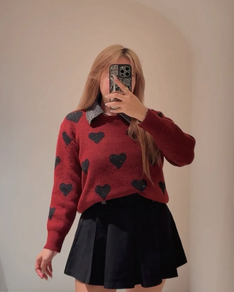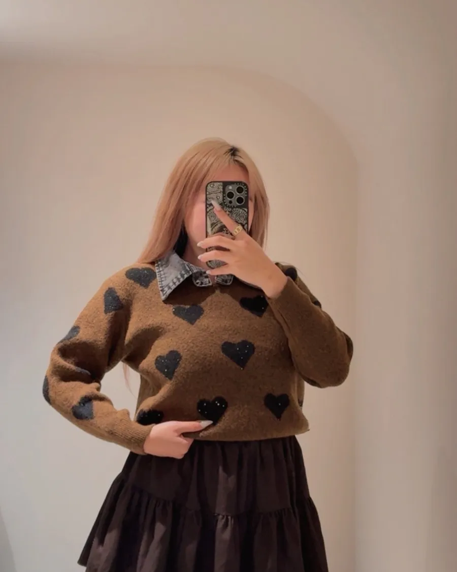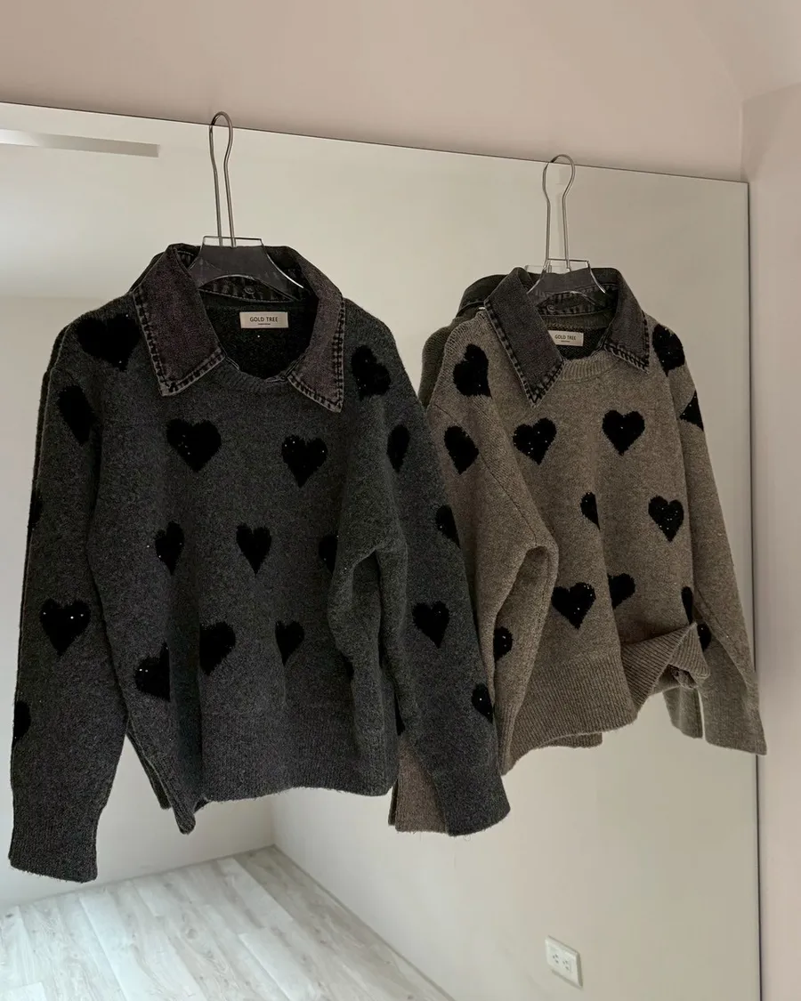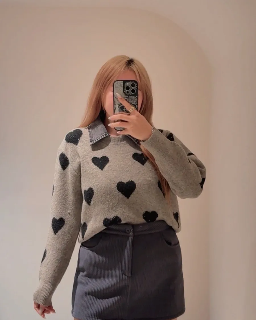愛心拼接丹寧毛衣(領子可拆)🤍